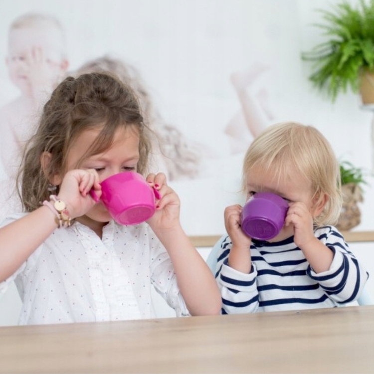 Популярная наклонная чашка для питья для детей в новой версии. Эта легкая и удобная чашка, любимая детьми и охотно приобретаемая родителями, дополнена инновационными решениями. Изогнутый край, поддерживающий зубы, и широкие удобные ручки — подарок для детей старшего возраста. Сосуд можно использовать как для заваривания питьевой воды, так и других жидкостей, в том числе супов-пюре.