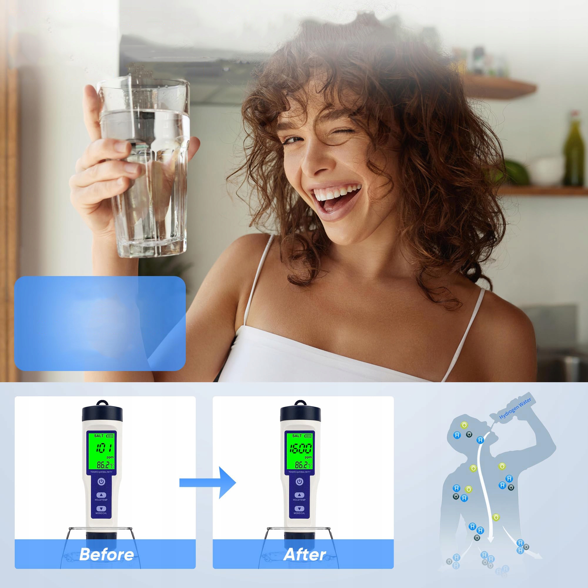 ✅ он может эффективно производить водород из любой питьевой воды, включая горячую воду, поддерживает стабильную концентрацию ионов водорода при 1200-1400 ppb и остается без вкуса. Перед использованием очистите генератор водорода в один -два раза. Кроме того, избегайте залить другие жидкости в бутылку.