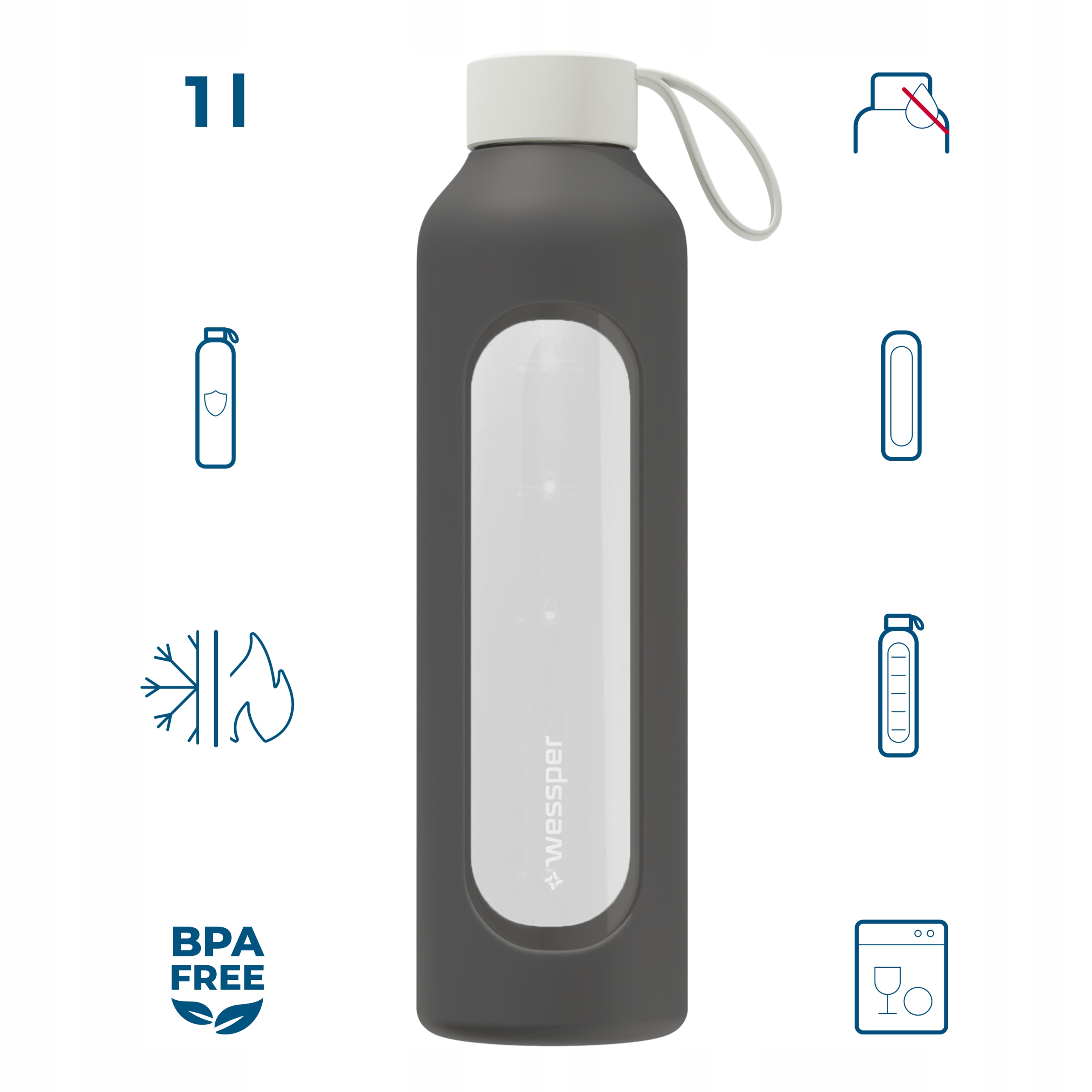 Бутылка Wessper B1 БОРОСИЛИКАТНОЕ стекло 1 л – Серый