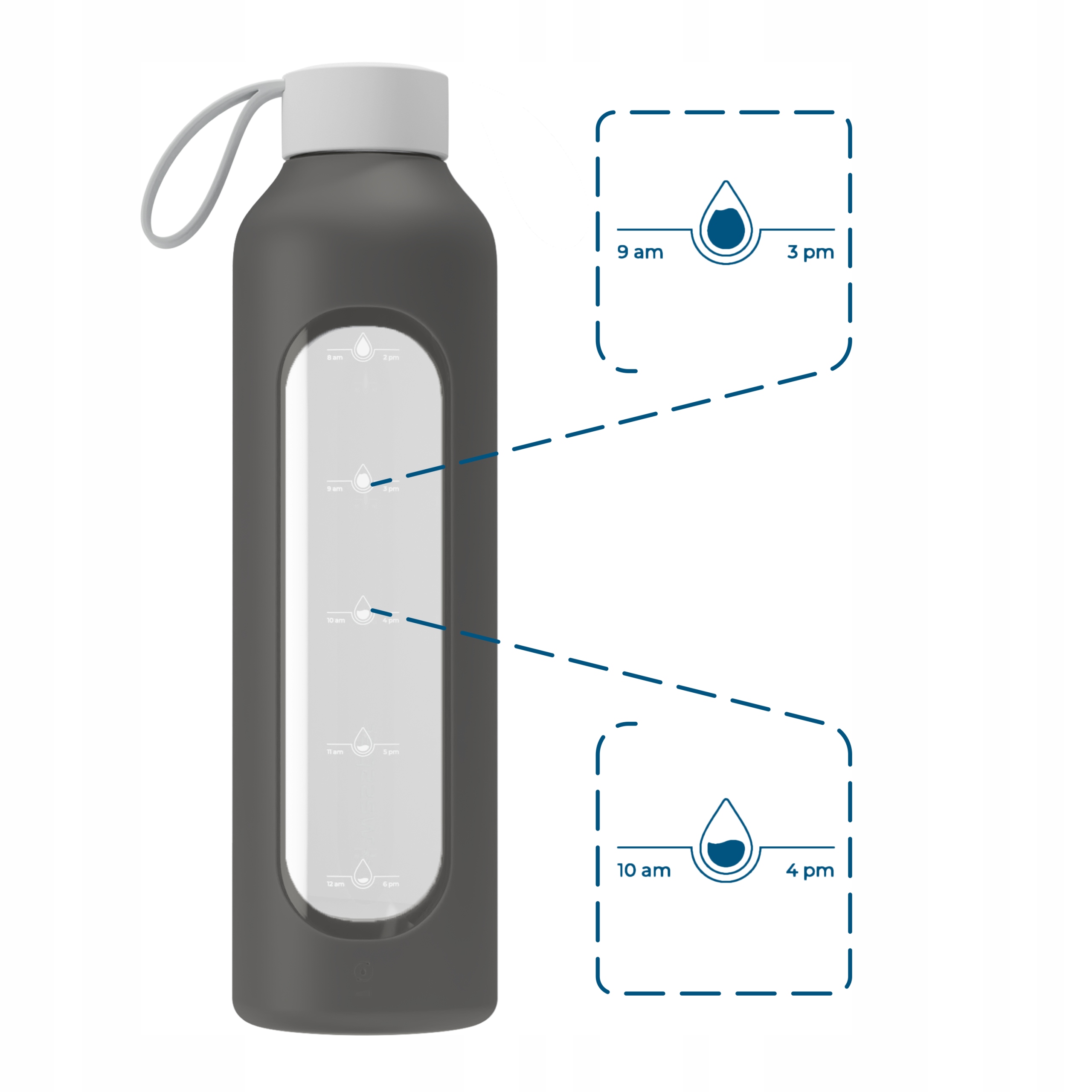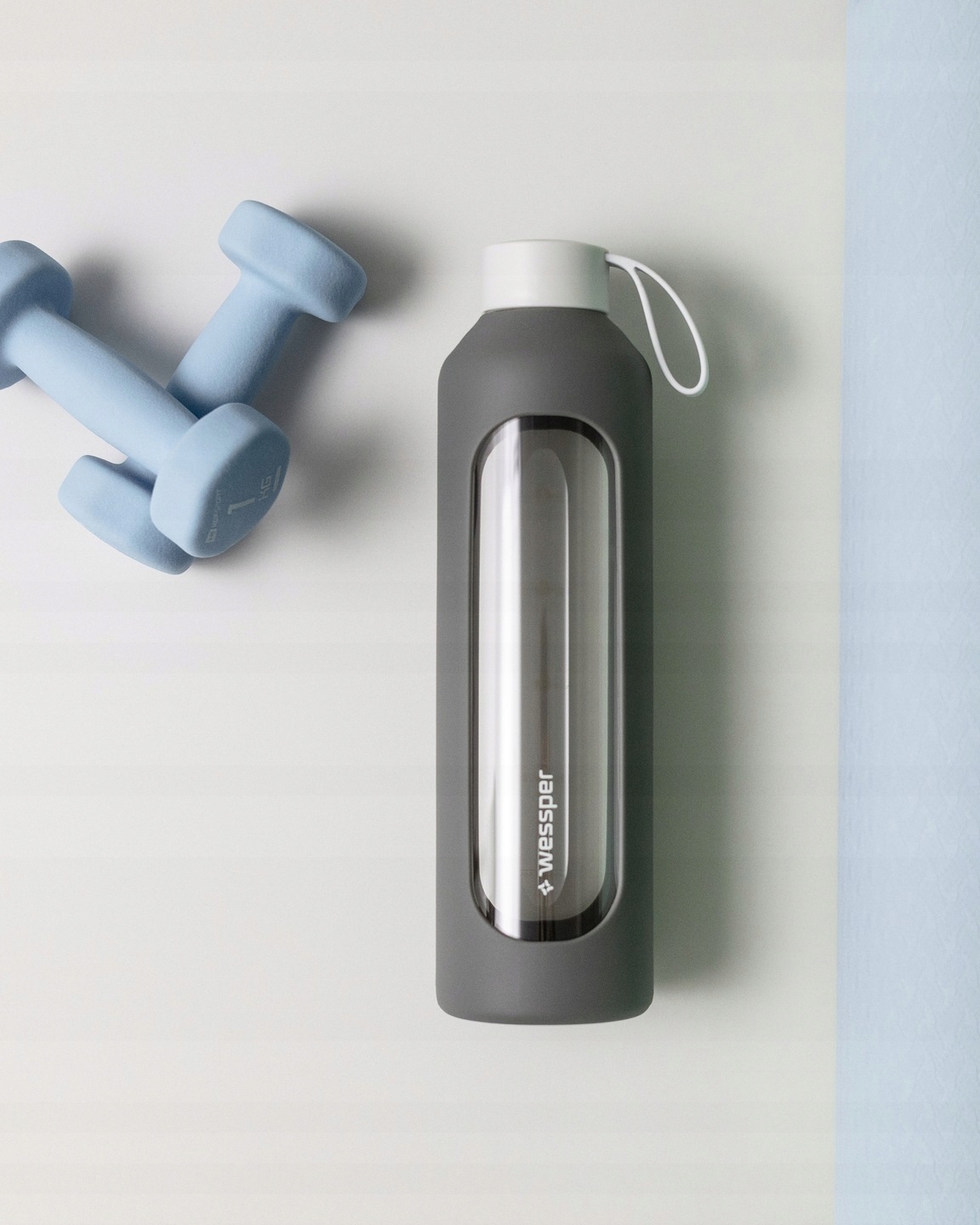 Все это дополняет соответствующий силиконовый чехол элегантного серого цвета, который не только защищает стекло, но и улучшает захват, а также придает бутылке современный, выразительный вид. Для тех, кто любит меняться - также доступны сменные футляры других цветов, позволяющие персонализировать бутылку в соответствии с вашими предпочтениями или стилем.