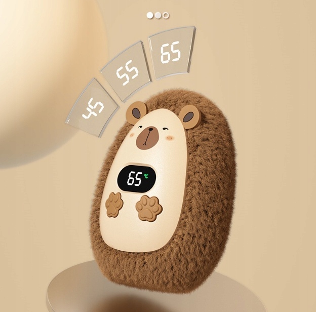 плюшевая грелка для рук USB C, 1200 мАч, 3 уровня нагрева, ЖК-грелка для рук