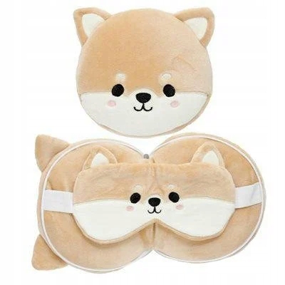 ПЛЮШЕВАЯ ПОДУШКА ДЛЯ ПУТЕШЕСТВИЯ И МАСКА ДЛЯ ГЛАЗ RELAXEAZZZ SHIBA MASCOT + БОНУС