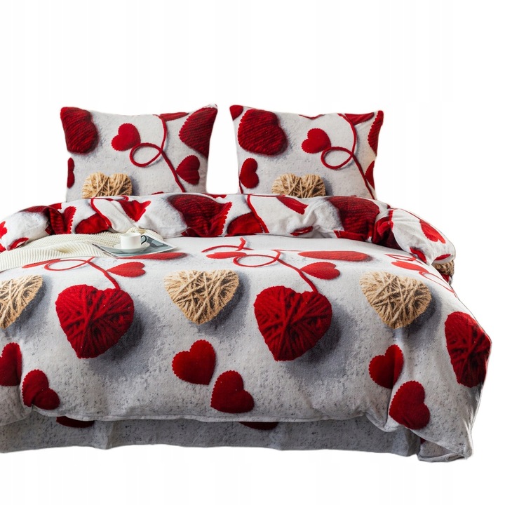 ПЛЮШЕВОЕ ПОСТЕЛЬНОЕ ПОСТЕЛЬНОЕ 220Х200см БЕЛОЕ КРАСНОЕ СЕРДЦЕ ТОЛСТАЯ И ТЁПЛАЯ ЗИМНЯЯ СОН