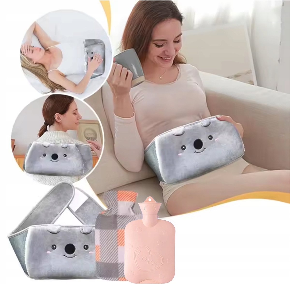Очень длинный ремень для грелки 3-в-1 Koala, очень пушистый, из резины с мягким чехлом. Грелка для шеи, рук, спины, ног, талии.