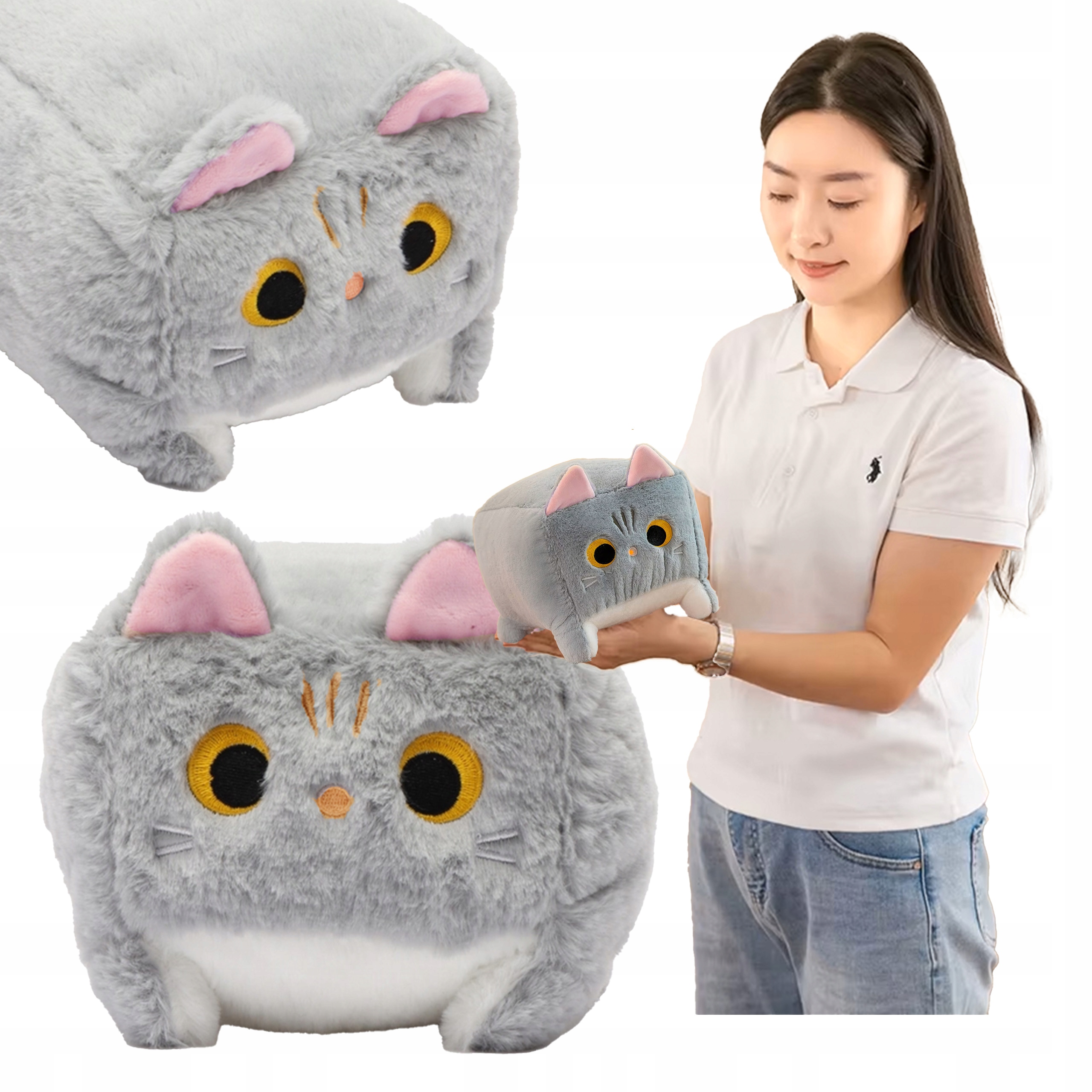 ПЛЮШОВЫЙ КВАДРАТНЫЙ КОТЕНОК СЕРЫЙ ДЛЯ ДЕТЕЙ, ИГРУШКА ДЛЯ ОБЪЕДИНЕНИЙ-ТАЛИСАНСА