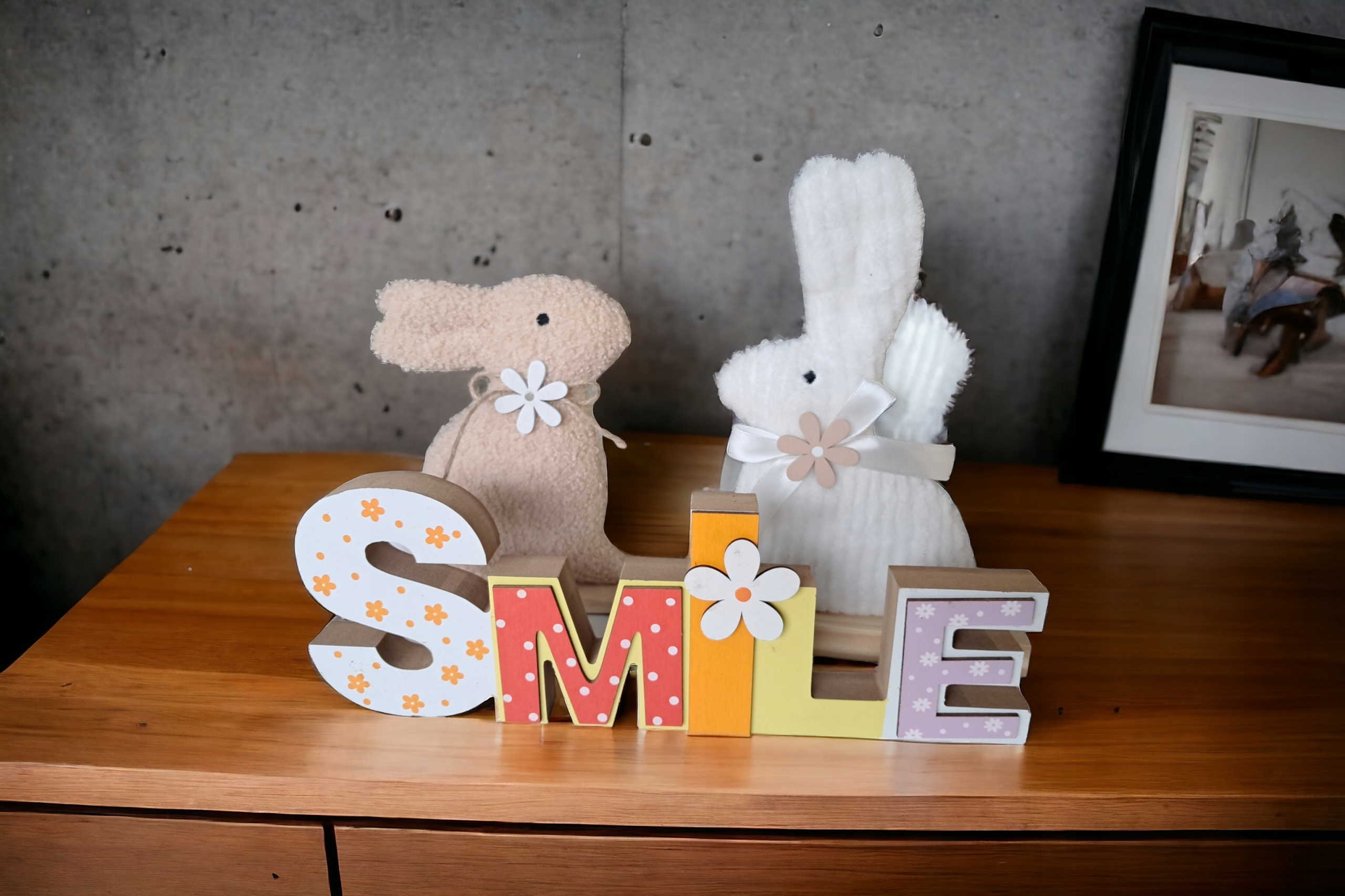 Подставка - бежевый пасхальный кролик - плюшевый на сосновой подставке.