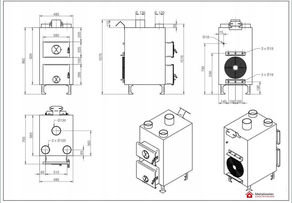 PN Blow с периодическим сжиганием топлива является экономичным и эффективным, разработанным главным образом для медленного сжигания топлива/топлива. Дополнительные элементы были установлены в воздушном покрытии, которые вызывают циркуляцию воздуха в корпус духовки. Это решение обеспечивает максимальное использование нагревательной поверхности корпуса печи и в то же время минимизирует в значительной степени потери тепла. В нижней части очага печи существует чугунная решетка на основе кронштейнов (30 × 20 см) для сжигания топлива на нем.