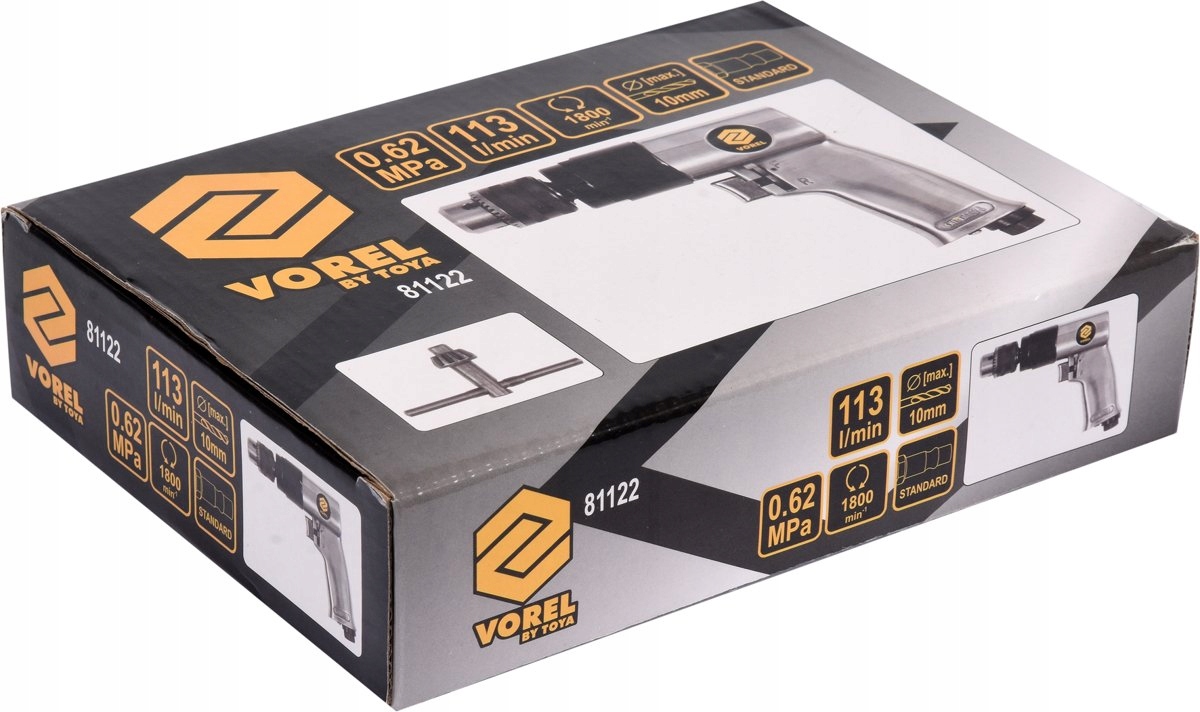 Пневматическая дрель марки VOREL, предназначена для сверления металла, дерева и пластика.
