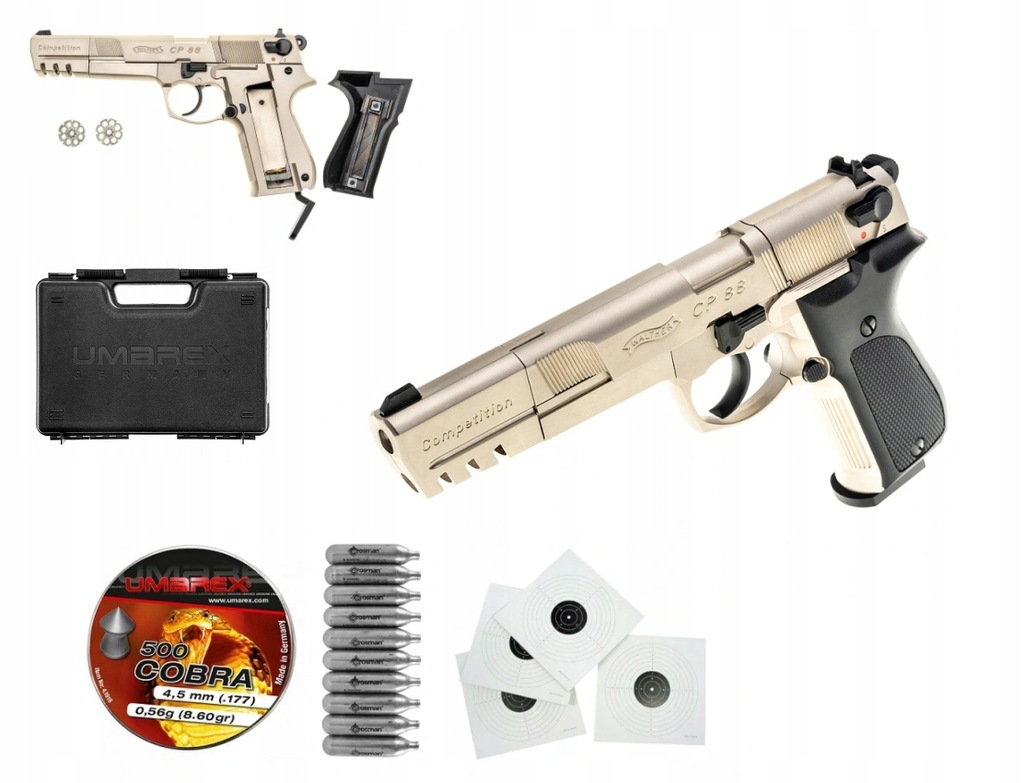 Walther CP88 Competition, никель, калибр 4,5 мм Diabolo CO2 — точная пневматическая копия немецкого полуавтоматического пистолета Walther P88. , ценится за высокое качество изготовления и точность.