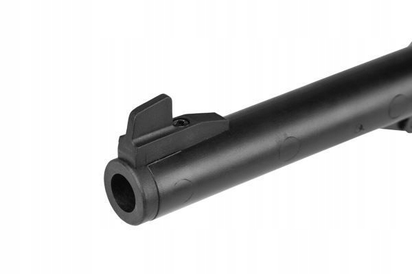 Пистолет стреляет пулями Diabolo калибра 4,5 мм с энергией 2 Дж. Установленный по оси нарезной ствол длиной 137 мм и ударно-спусковой механизм с малым сопротивлением и коротким ходом.