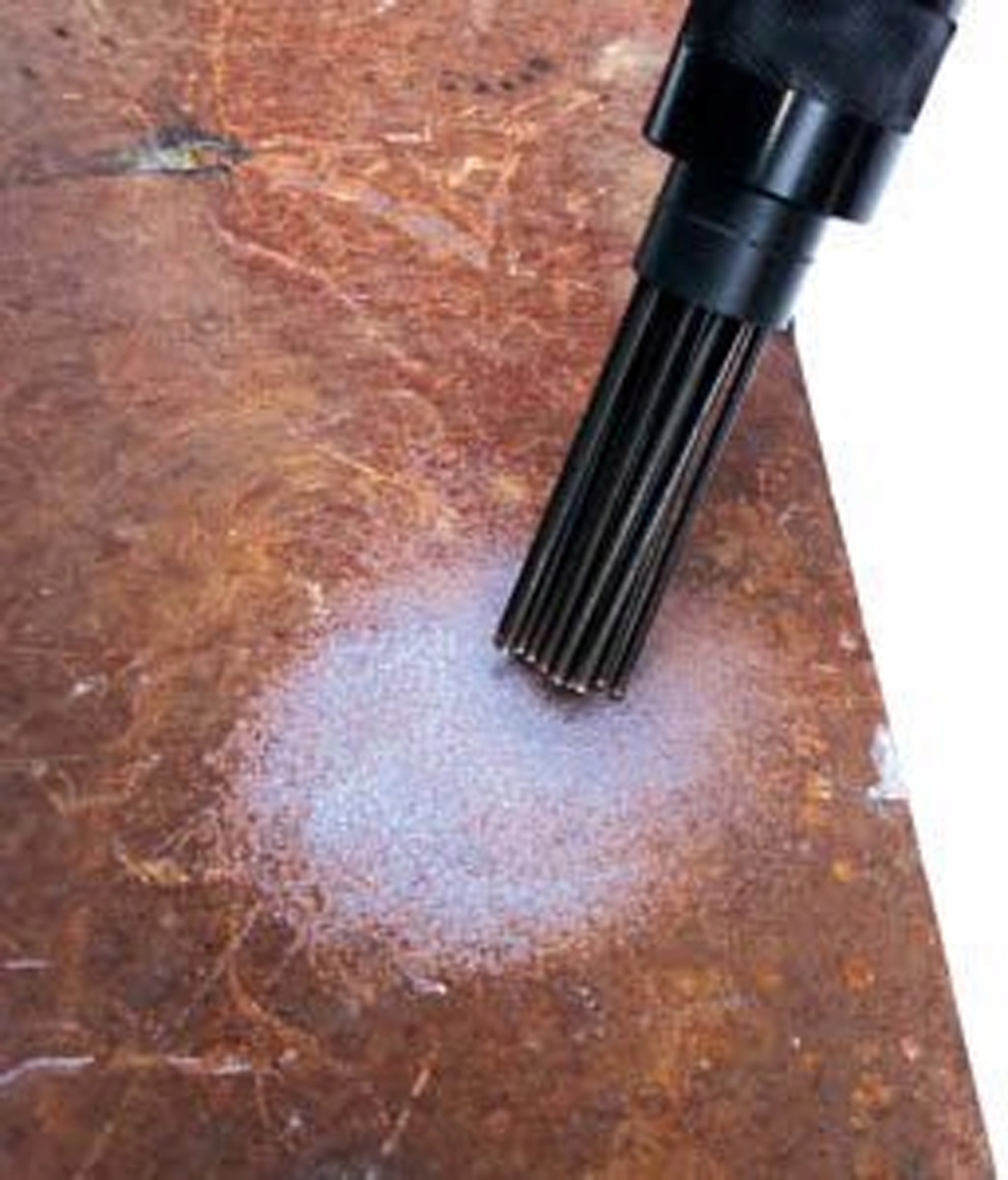 Игольчатый пневматический молот, приводимый в действие потоком сжатого воздуха. Предназначен для удаления, среди прочего: окалины, флюса, окалины, ржавчины, краски с элементов стальных конструкций в кузовных и покрасочных мастерских, автомобильных мастерских, производственных цехах, при проведении домашних работ.