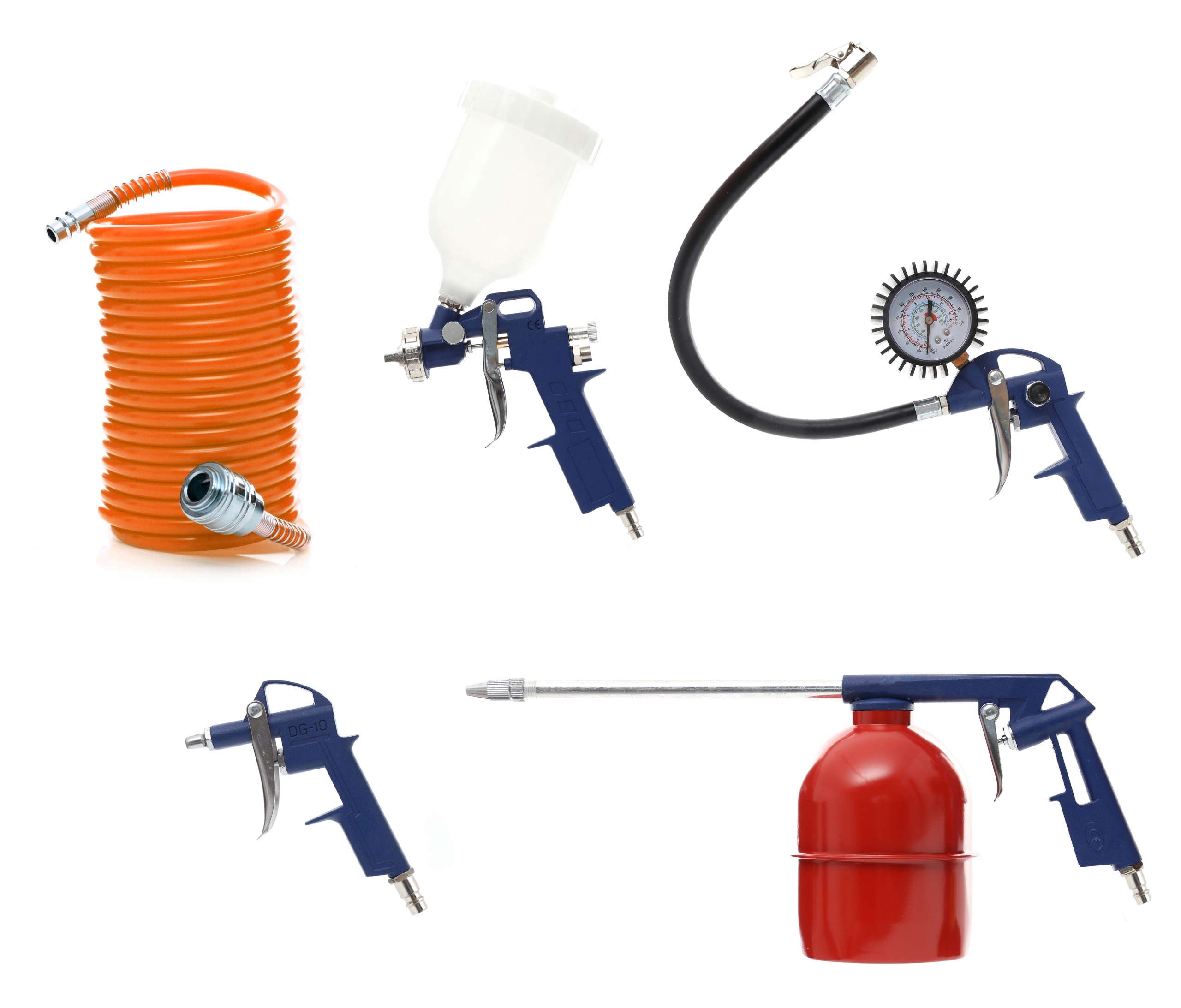 Спиральный шланг 5 м для подключения пневматических инструментов, краскопультов, других пневматических устройств или для удлинения пневматических шлангов.