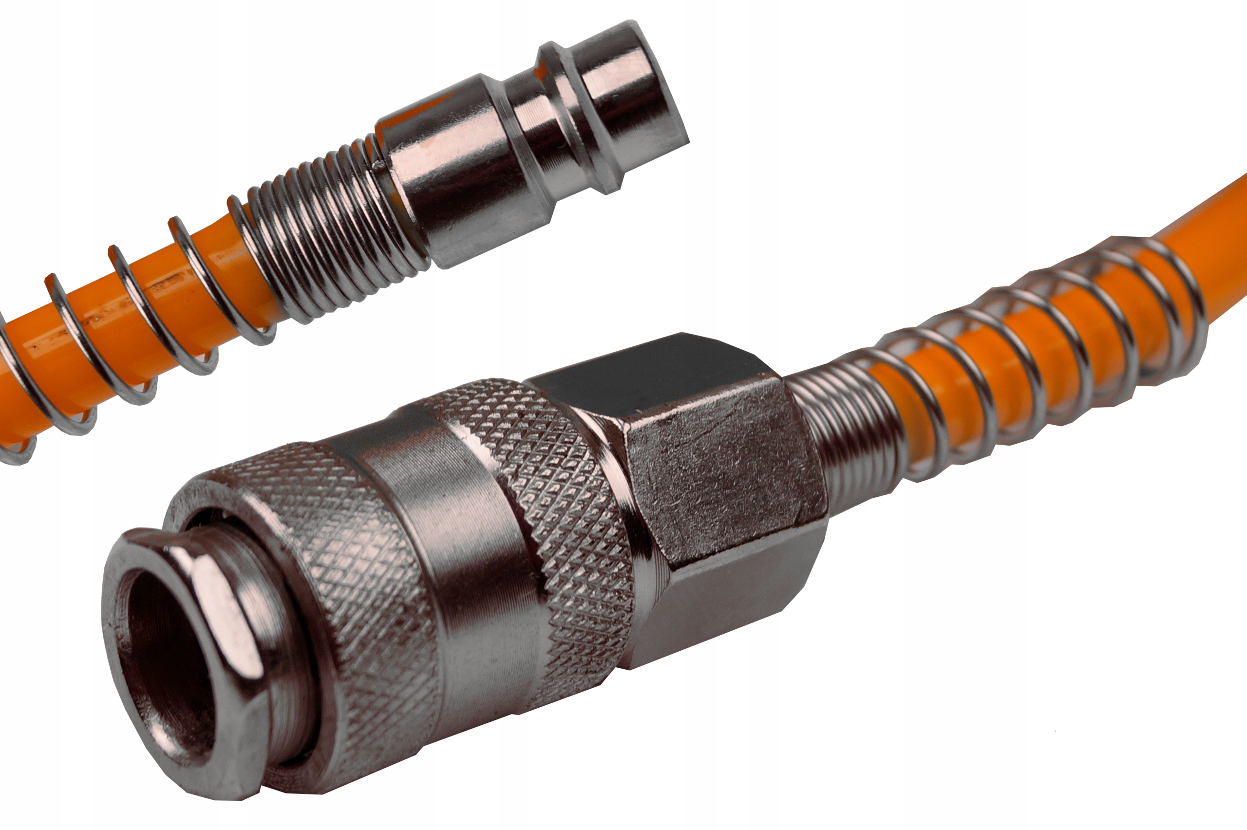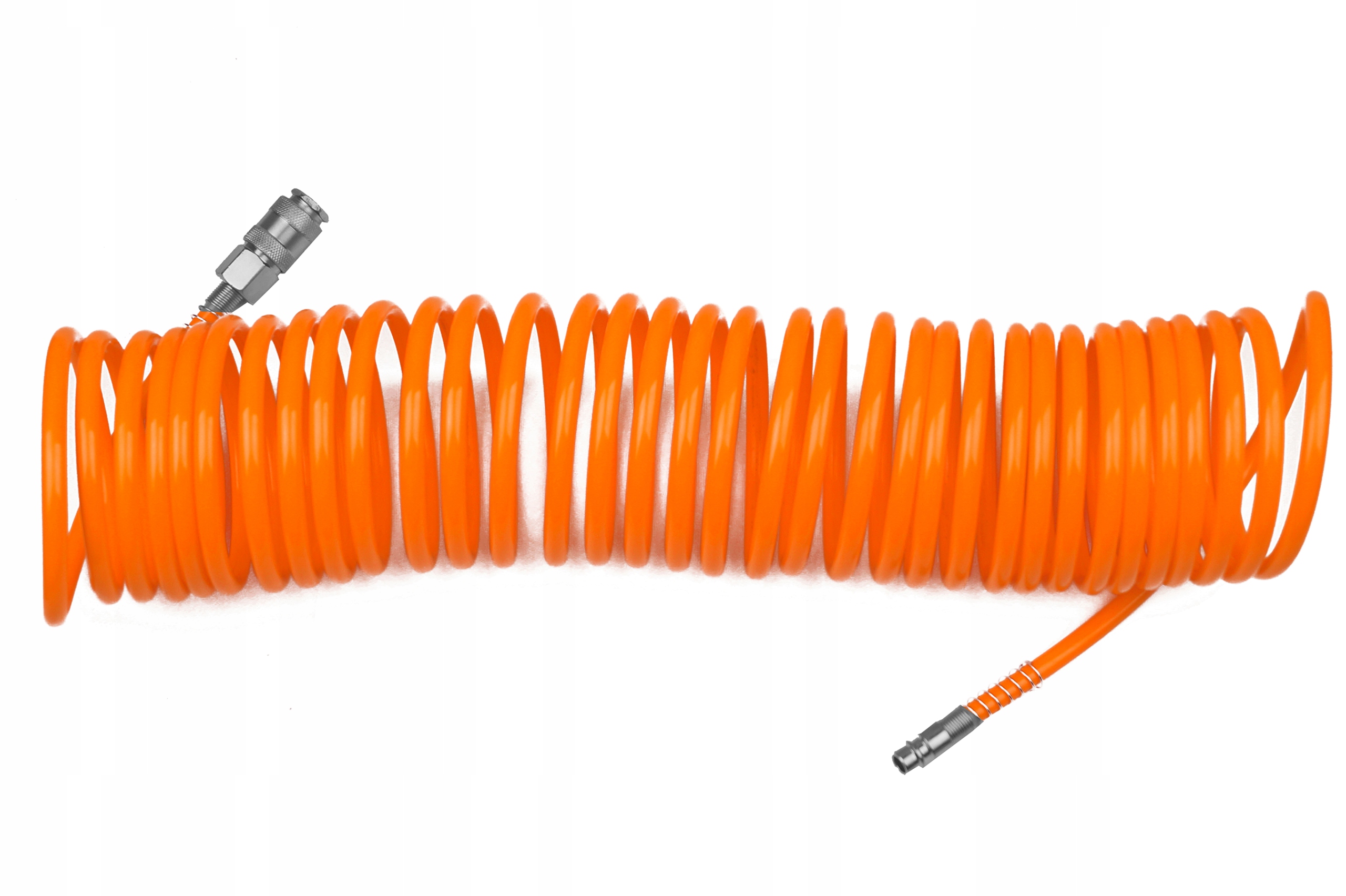 Спиральный шланг 5x8 мм идеален там, где необходима мобильность и скорость использования. Длина ✔️10м и макс. рабочее давление ✅8 бар / ✅116PSI делает его идеальным в качестве спирального пневматического шланга для мастерской.