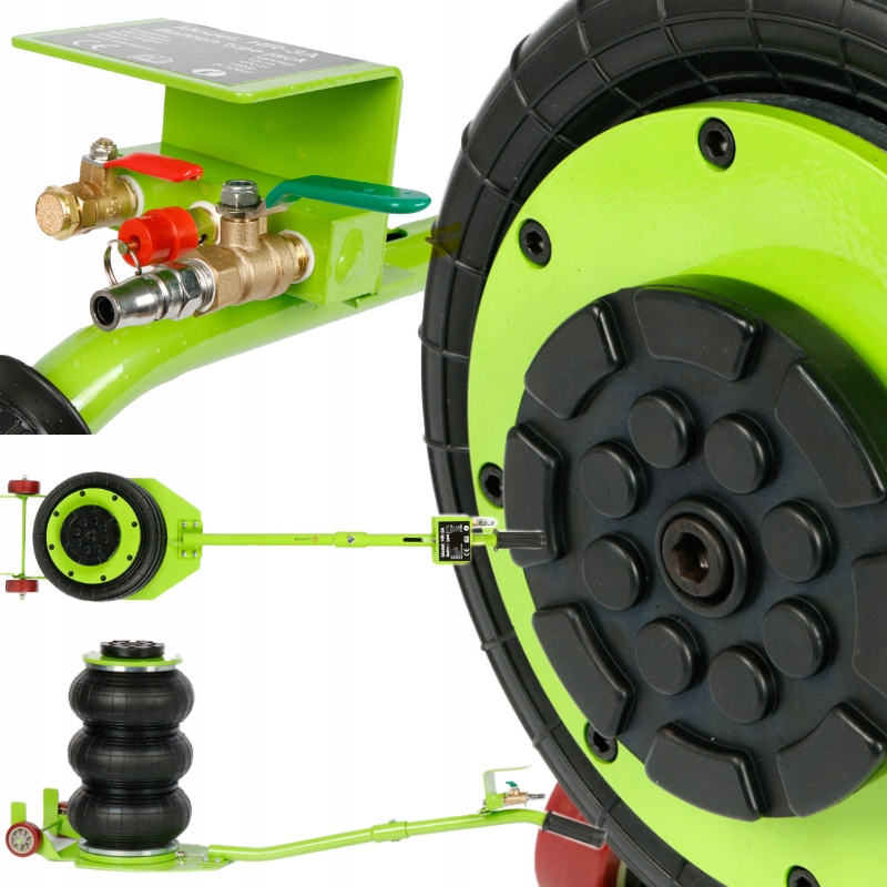 Удобные шаровые краны с цветовой маркировкой облегчают идентификацию и эксплуатацию. Безопасность использования обеспечивается предохранительным клапаном, который предотвращает повреждение подушки безопасности в случае чрезмерного давления воздуха. Резиновая ножка и резиновое кольцо дополнительно защищают поднимаемый элемент от перемещения.