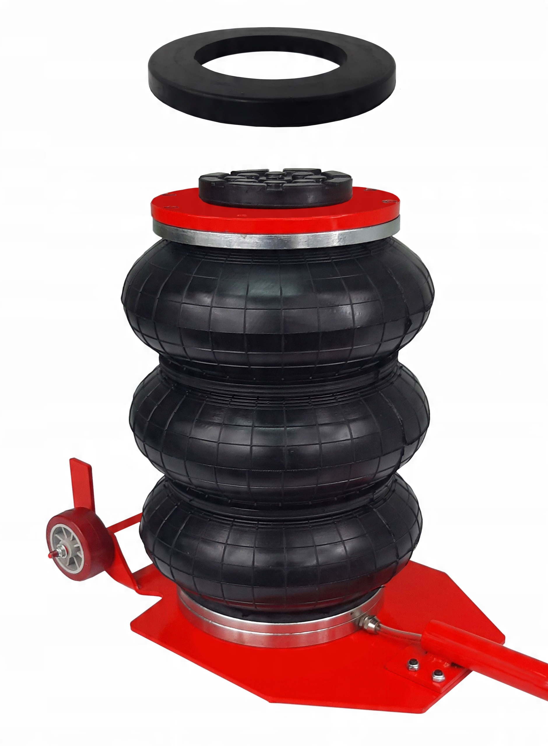 - красный предохранительный клапан, предотвращающий разрыв подушки в случае превышения допустимого давления сжатого воздуха - выше 10 бар