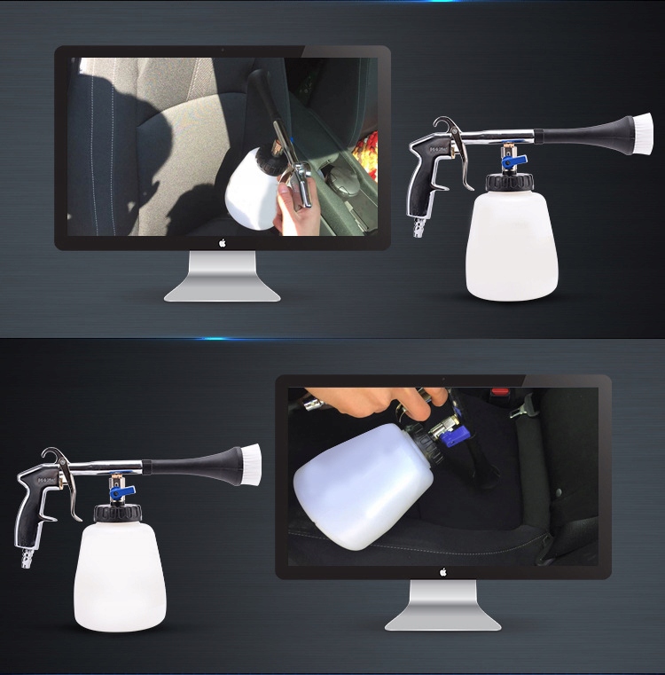 - Отличный пистолет для эффективной влажной уборки всех видов загрязнений на кузове и салоне автомобиля, в том числе: воздухозаборники, кондиционеры, зеркальные и пластиковые элементы, сиденья, обивка, ковры и всевозможные трудноудаляемые загрязнения и загрязнения.