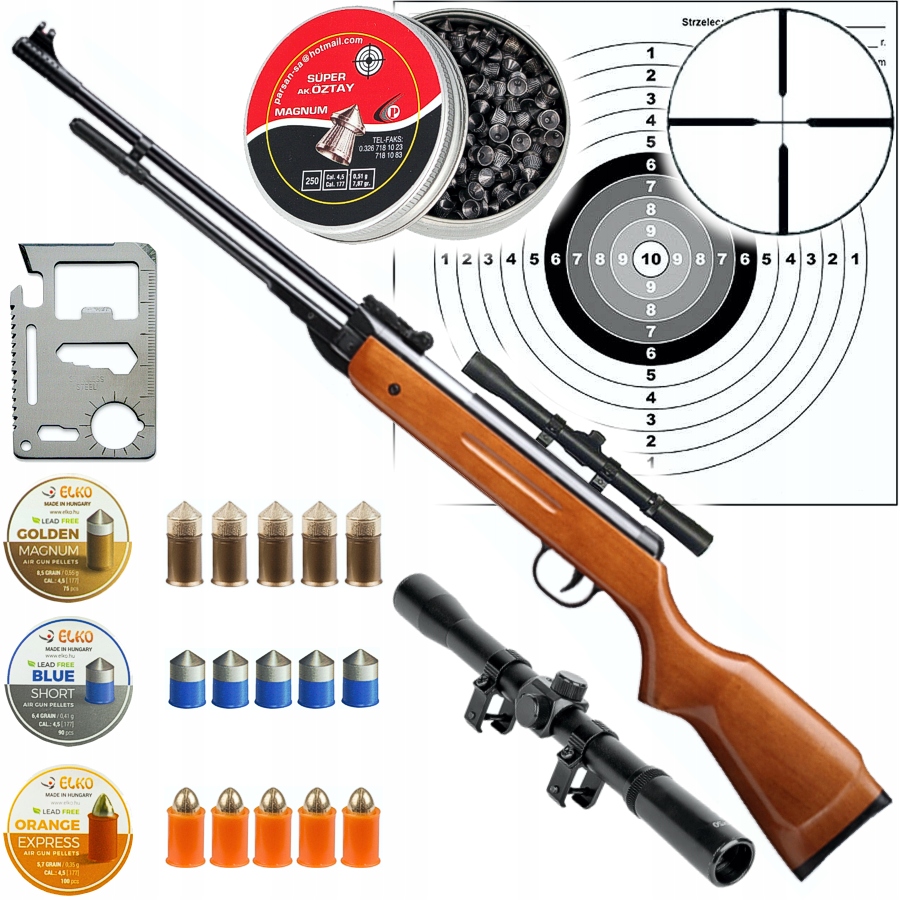 Основной боеприпас, входящий в комплект – пули калибра 4,5 мм. 250 шт. Плюс комплект стрелковых мишеней.