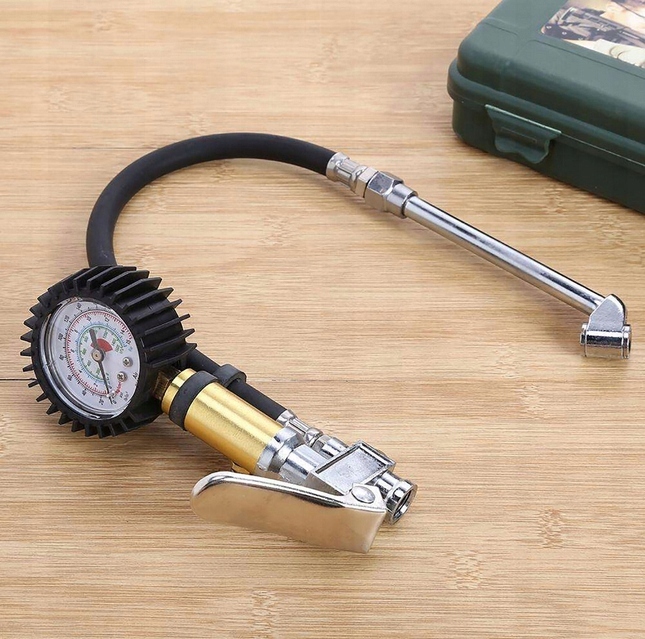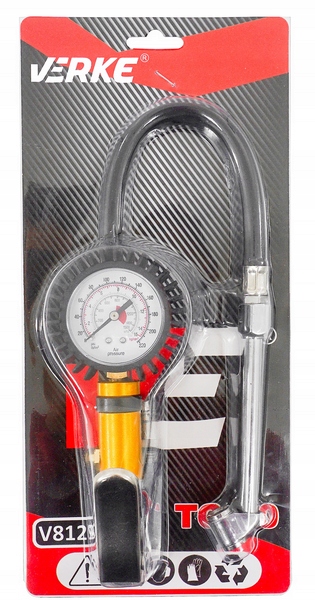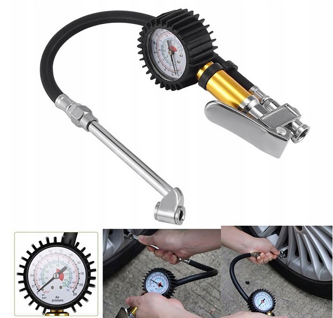 Пистолет для накачивания с манометром предназначен для накачивания и контроля давления в пневматических шинах. Корпус часов имеет резиновый корпус. Оснащен клапаном выпуска воздуха.