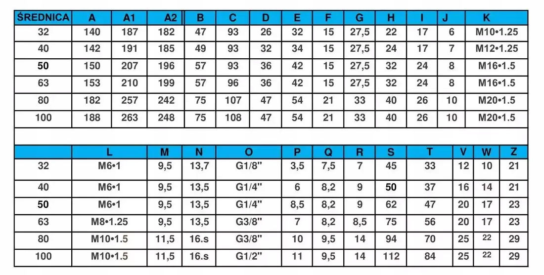 - Конец штока поршня: Наружная резьба M20x1. 5