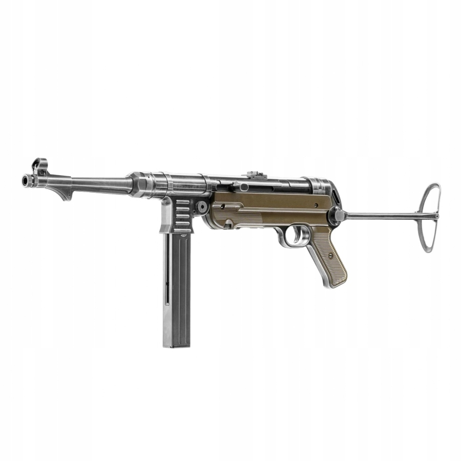 Немецкая пневматическая винтовка Umarex Legends MP 40 представляет собой интересную копию пулемета MP40. Магазин вмещает 50 штук пуль ВВ калибром 4,5 мм.