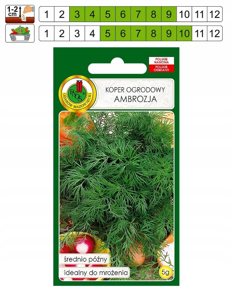 Укроп «АМБРОЗА» дает исключительно вкусные листья. с интенсивным ароматом. Характеризуется продолжительным периодом сбора урожая, соцветия появляются поздно. Его можно сеять в пленочные туннели ранней весной на выгонку, а также пригоден для посева для осеннего урожая.