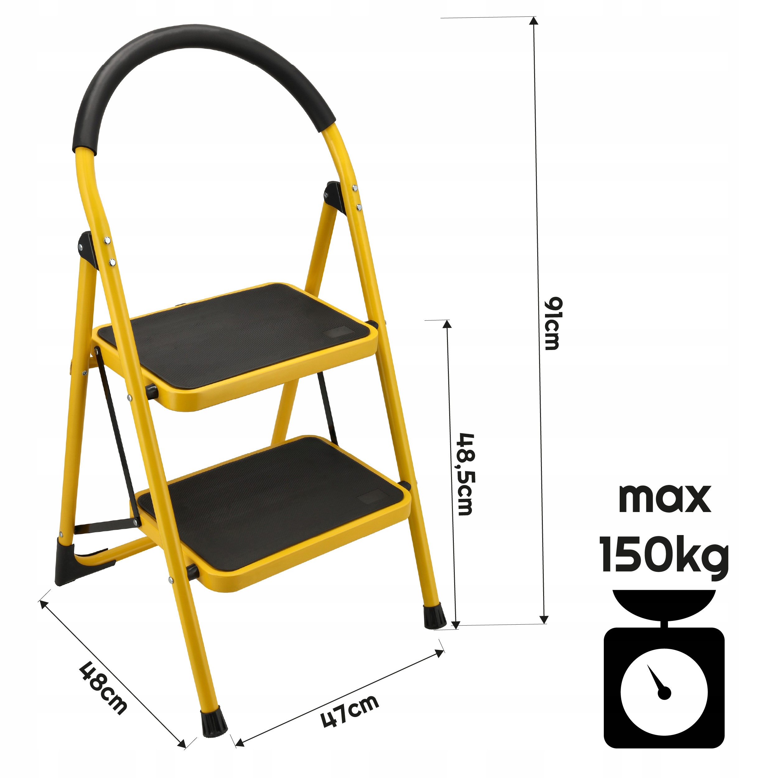 Складная двухступенчатая стальная лестница — надежный инструмент для домашнего использования. Его отличает высокое качество изготовления, устойчивость и компактная конструкция, облегчающая хранение. Идеально подходит для повседневной работы по дому и квартире.