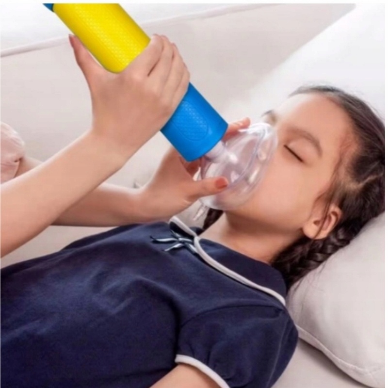 Нажмите и удерживайте ручку и вентиляционный клапан рукой, чтобы обеспечить плотное прилегание ко всей поверхности лица пострадавшего и создать сильное всасывание.