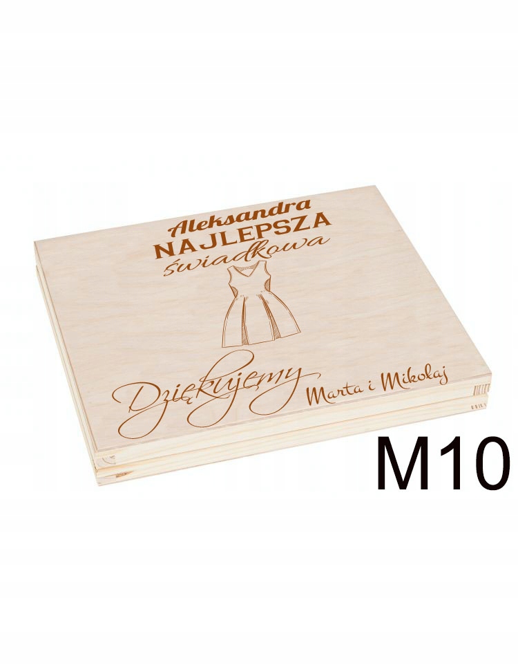 <р> Декоративная шкатулка с вашим индивидуальным текстом, благодарностью ваших родителей, крестных, свидетелей и выбранной вами гравировкой, посвященной свадебной церемонии. Коробка Merci – универсальный продукт. Их также можно использовать для любого случая. Идеально подойдет в качестве подарка близкому человеку. Идеальная коробочка – как натуральная подарочная упаковка. Внутри можно разместить шоколадные конфеты, конфеты, украшения, рамки для фотографий и т. д. предметы схожих размеров. Деревянная поверхность пригодна для декорирования в технике декупаж, что сделает ее уникальной и неповторимой. Коробка закрывается на магнит – мы уверены, что содержимое не высыпется. Внутри изящное сердечко с вашим индивидуальным текстом (можно сделать и без дарения - укажите свое сообщение в комментариях) и крышка с гравировкой по выбранному рисунку. У нас есть широкий выбор дизайнов для любого торжества — посетите другие наши аукционы. <р> ВНИМАНИЕ!!! <р> Пожалуйста, укажите выбранный образец, данные и назначение в примечаниях к заказу. <р> Цвет: Натуральный. <р> Магнит – закрытие. <р> Предложение распространяется на - 1 кусок деревянной коробки с гравировкой и посвящением.Внешние размеры продукта: