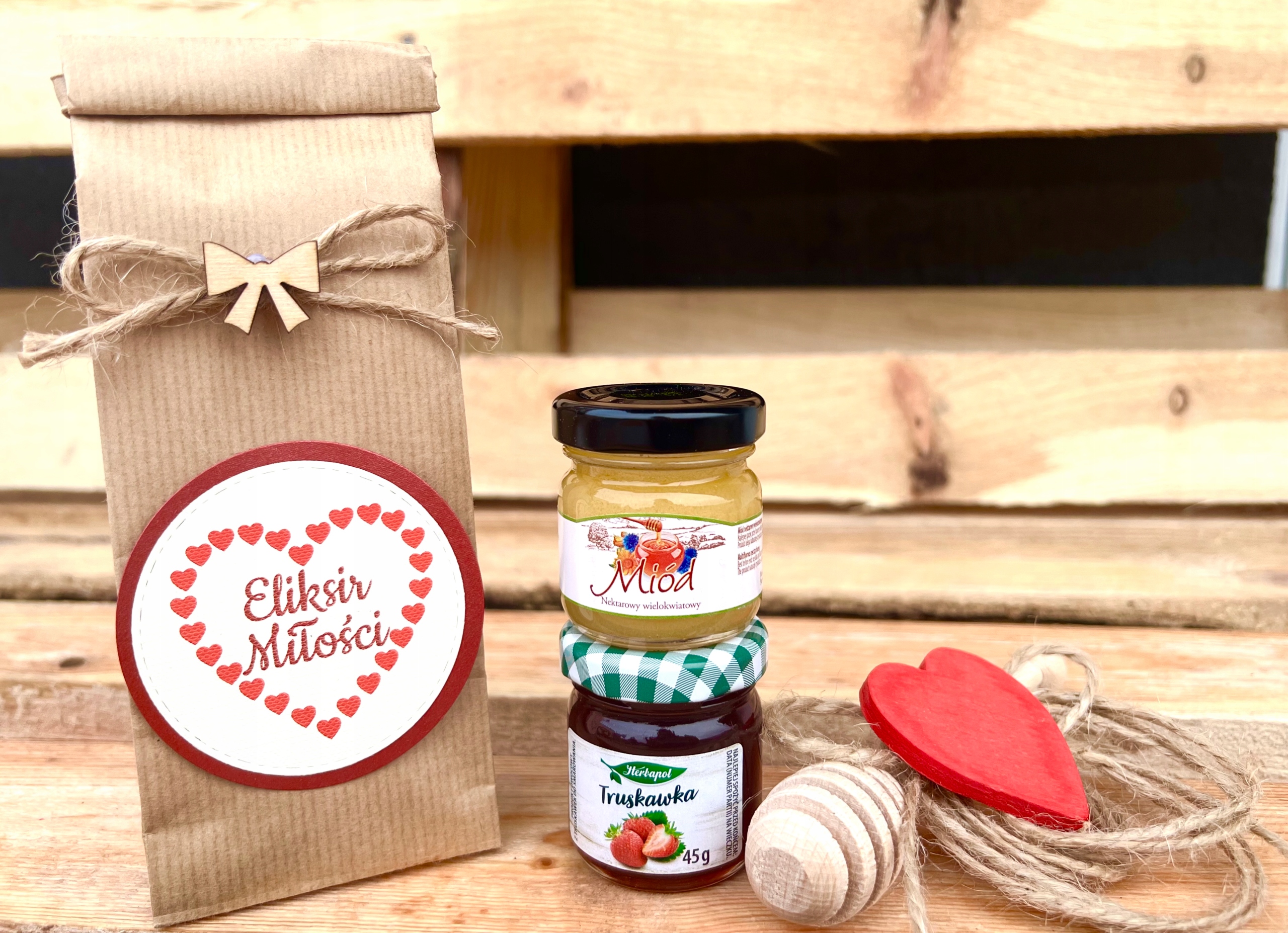- Целая упакованная в коробку - эко -коробку с красным сердцем.