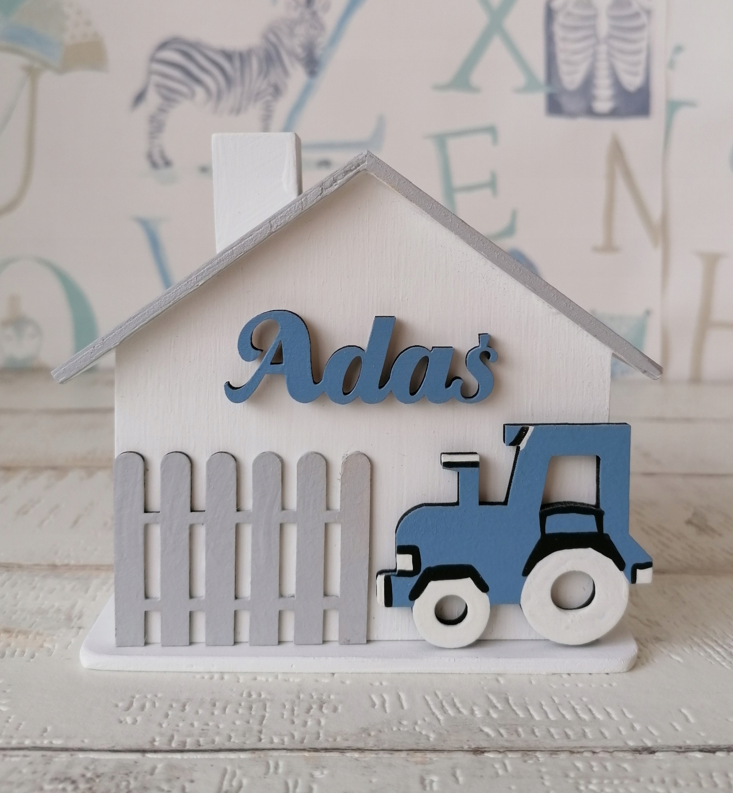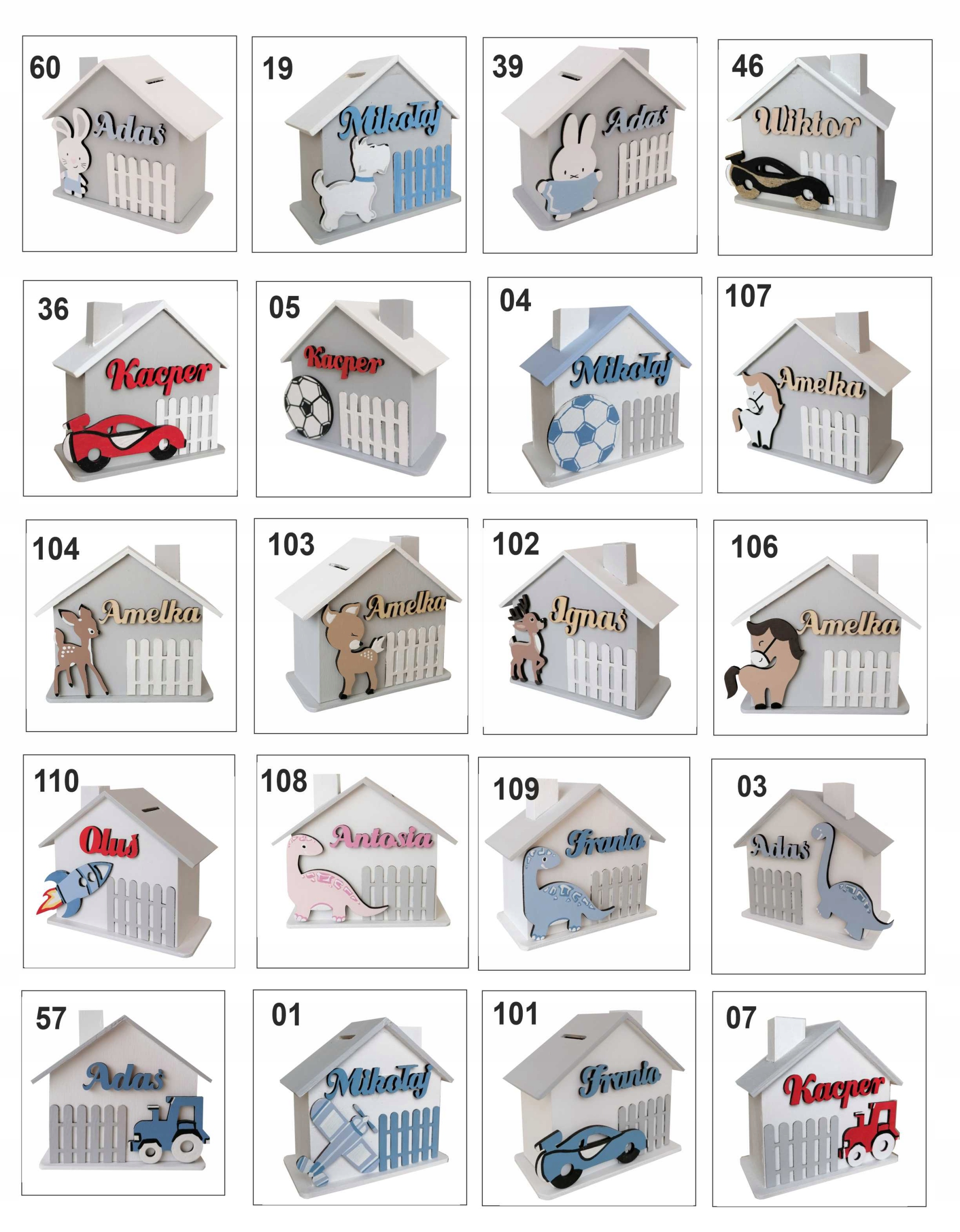 Деревянная копилка, расписанная вручную в форме домика, станет прекрасным подарком каждому ребенку на разные случаи жизни. В передней части копилки имеется ограждение и декор, расписанный вручную. Вверху, на видном месте, деревянная надпись с именем ребенка.