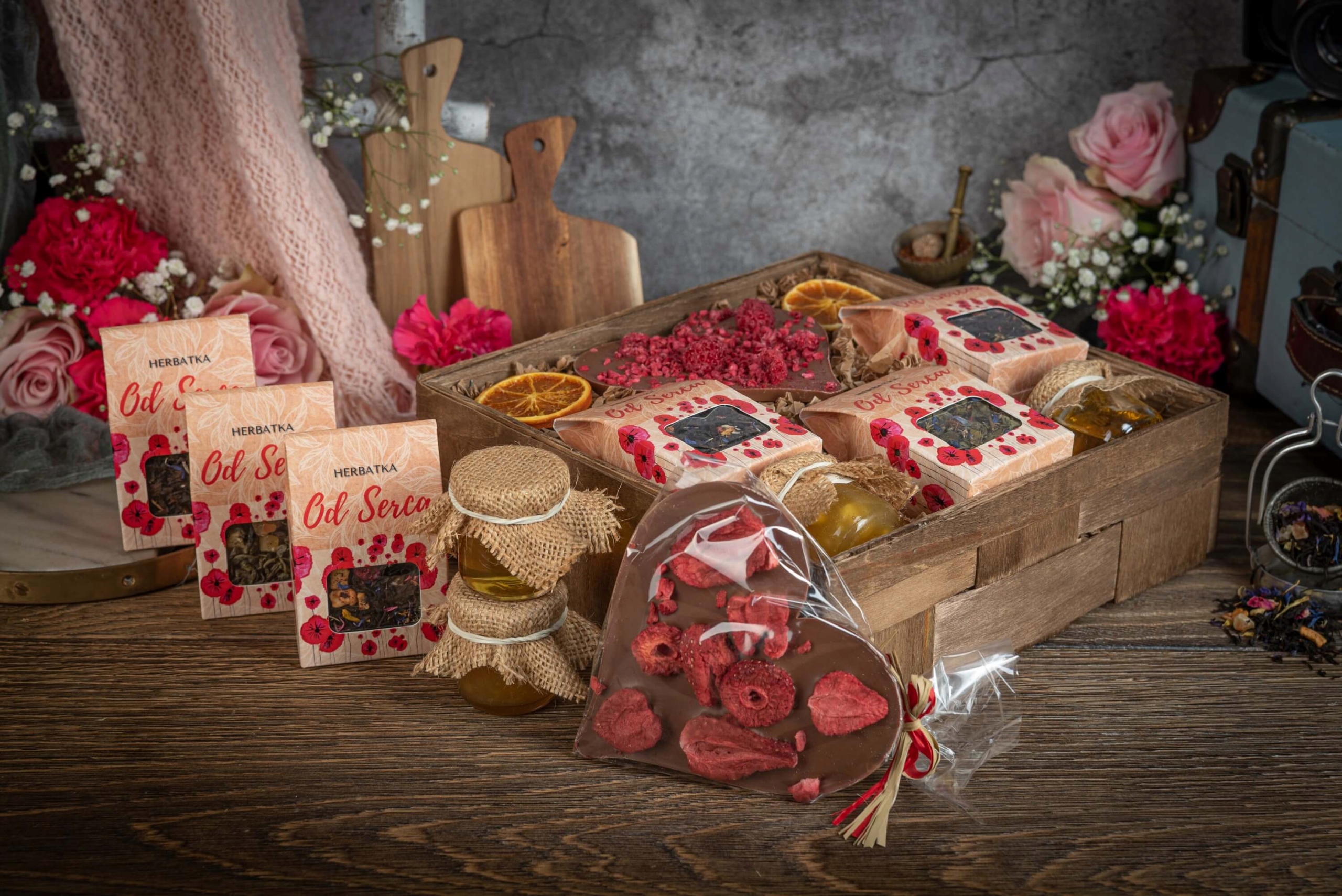 Подарочная корзина с натуральными продуктами, чаем и шоколадом