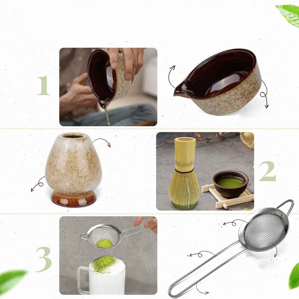 ✔️Высококачественные материалы:Наши инструменты для приготовления матча изготовлены из высококачественного бамбука и керамики, они долговечны. и продолжительный. Бамбуковый венчик позволяет получить нежную кремовую консистенцию матча, а керамическая чаша и подставка придадут элегантность вашему чайному сервизу.