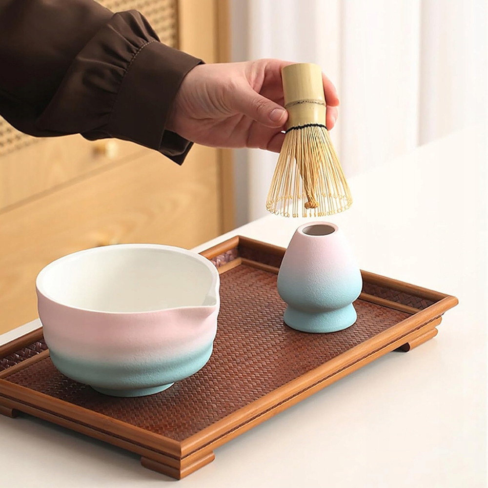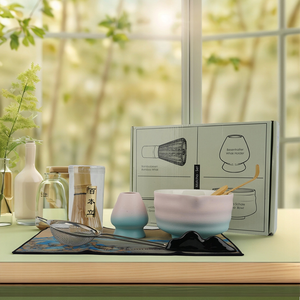 - 🍵В комплект входит 1 миска, 1 подставка для венчика, 1 венчик, 1 ложка, 1 ситечко, 1 мерный стакан, 1 подставка для ложки и 1 ткань — идеально подходит для приготовления настоящего матча.