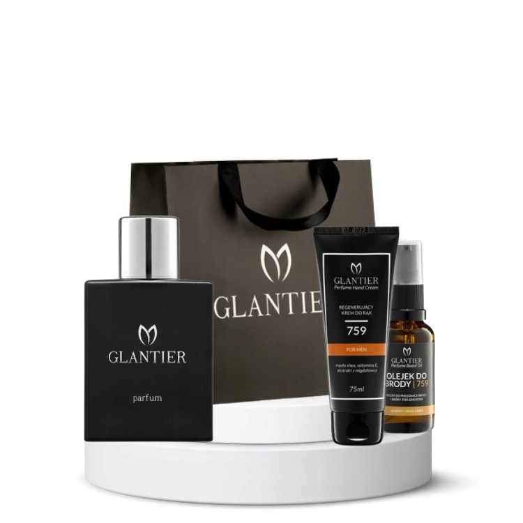 Подарочный набор Glantier 759 Maxi: духи премиум-класса + масло для бороды + крем для рук + сумочка