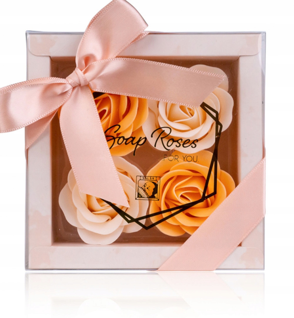 Набор из 4 мыльных цветов в коробке кремового цвета и оранжевых роз