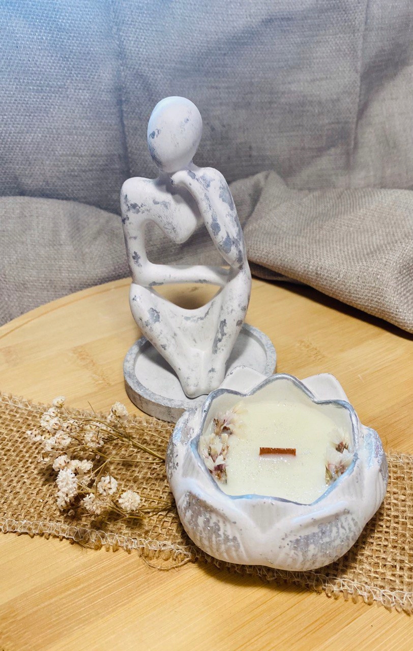 Этот набор идеально подходит для подарка или в качестве украшения любого интерьера. Это принесет мир, элегантность и уникальный аромат в ваш дом. «Медитация, установленная с цветочной свечой», - это идеальное сочетание эстетики и функциональности, которое будет радовать любителей искусства и природы.