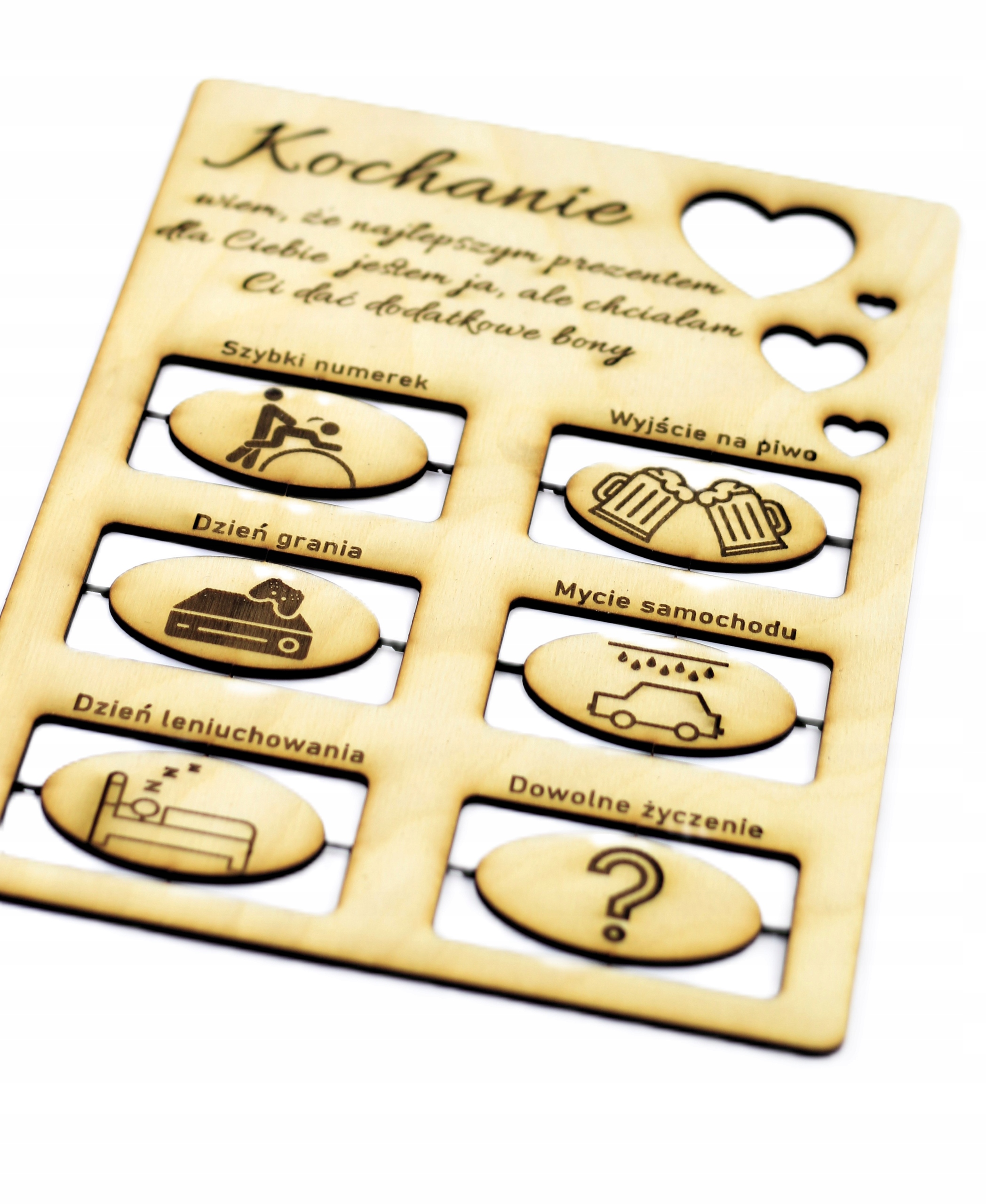 ❤️ Персонализированные купоны: В комплект входят 6 романтических купонов с готовыми предложениями на день безделья, мытье машины или день игр.
