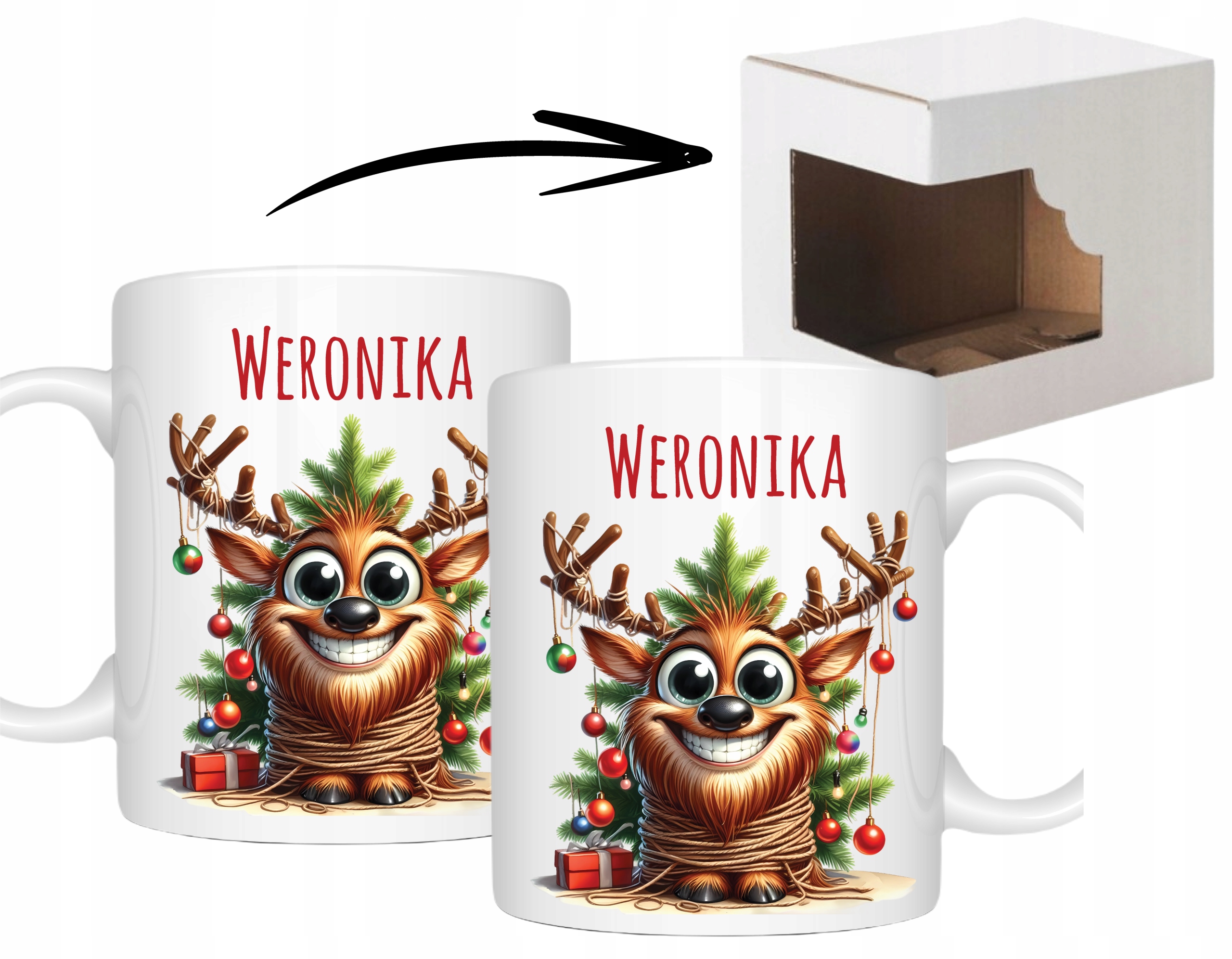 ПОДАРОК КРУЖКА РОЖДЕСТВЕНСКИЙ ОЛЕНЬ РОЖДЕСТВЕНСКАЯ ЕЛКА САНТА Имя САНТА