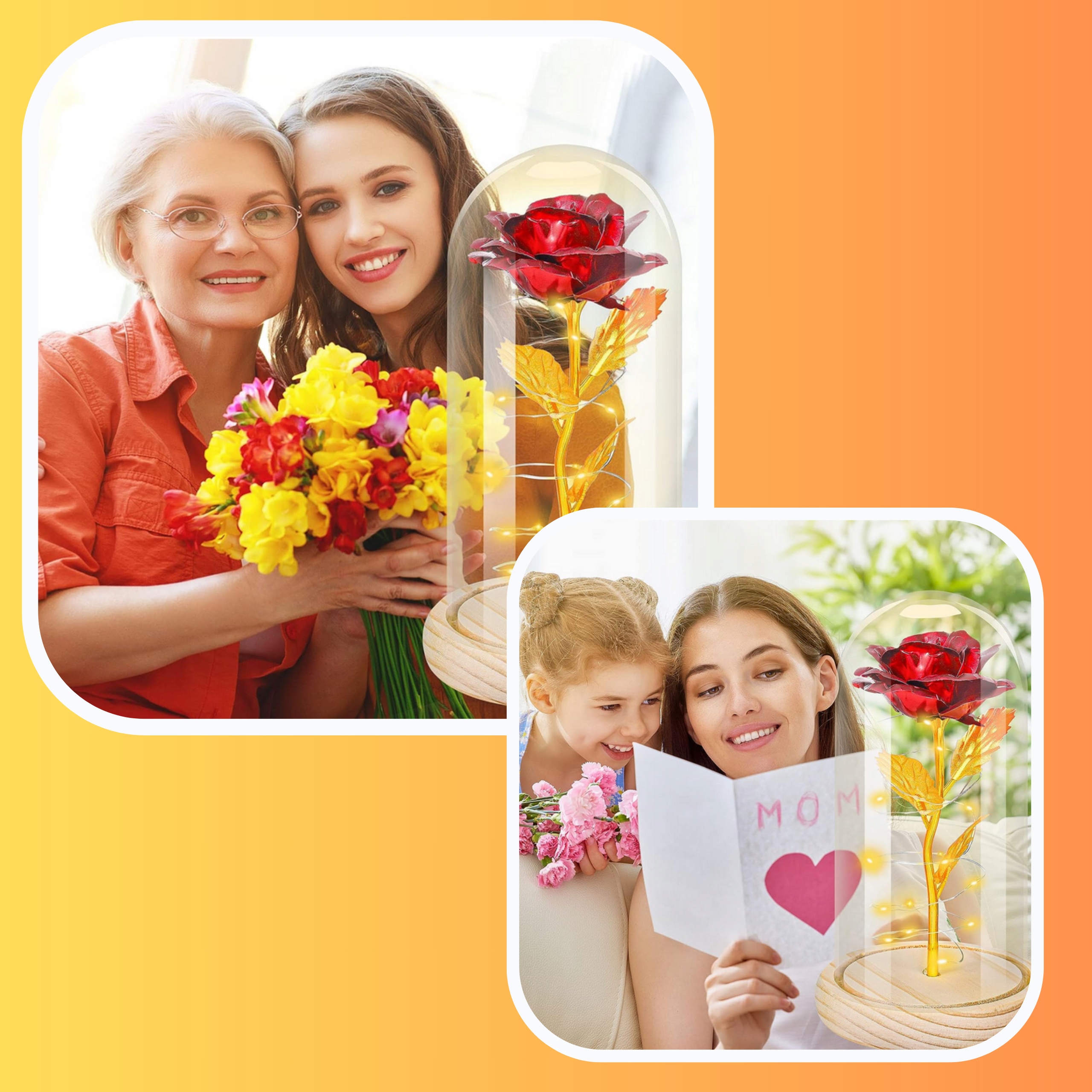 ⭐Роза в стеклянном куполе и теплый белый светодиодный свет: Искусственная роза изготовлена из высококачественного шелка, а это значит, что лепестки выглядят практически по-настоящему красиво и ярко. Консервированная роза может прекрасно и вечно храниться в стеклянном куполе, а стеклянный купол сделан из стекла, более прозрачного и красивого. Основание изготовлено из сосновой древесины, имеющей устойчивую и гладкую поверхность. Светодиодные фонари окутывают розу и придают цветку теплое сияние.