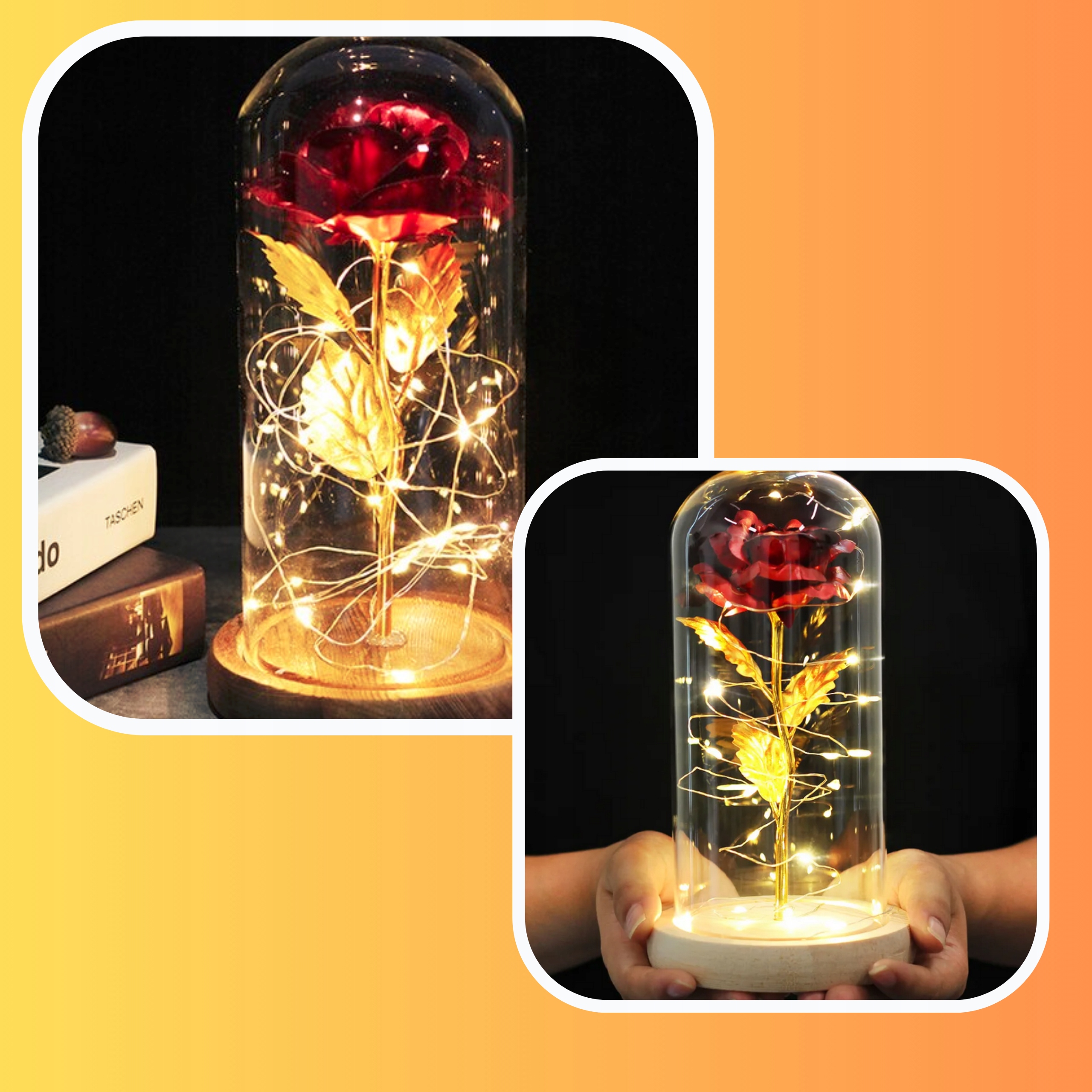 ✅ ВЕЧНАЯ РОЗА В СТЕКЛЕ, СВЕТЯЩИЙСЯ СВЕТОДИОД + ДЕКОРАТИВНАЯ ПОДАРОЧНАЯ КОРОБКА