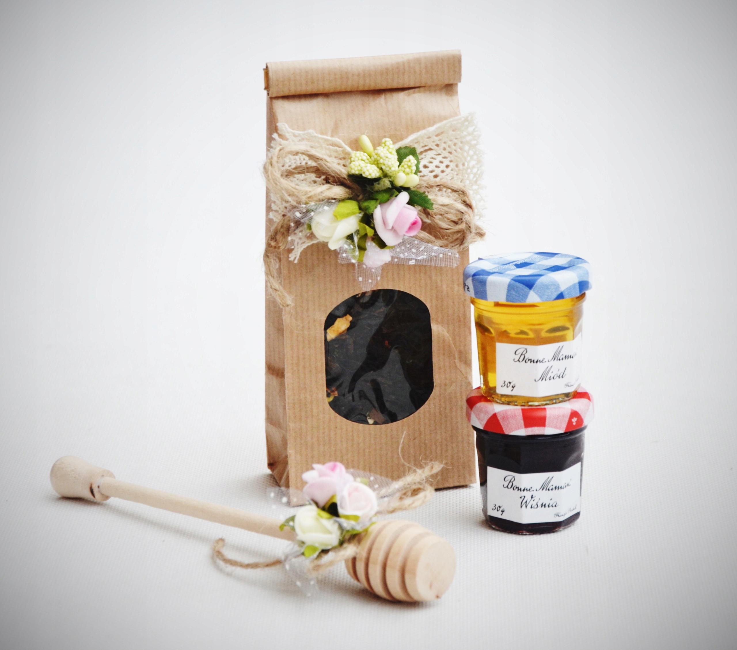 - мед акациевый, варенье вишня - чайный сервиз, пакеты по 30 г,