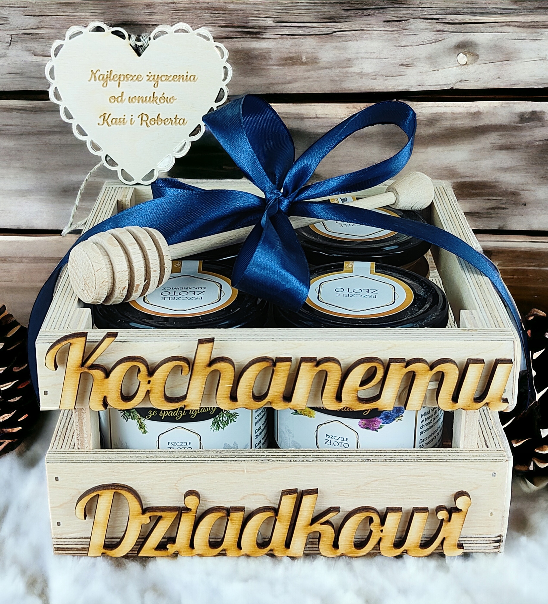 ПОДАРУНОК БАБУСІ ТА ДІДУСЮ ПОДАРУНКОВИЙ КОШИК 4шт мед 250г ГРАВІЮВАННЯ