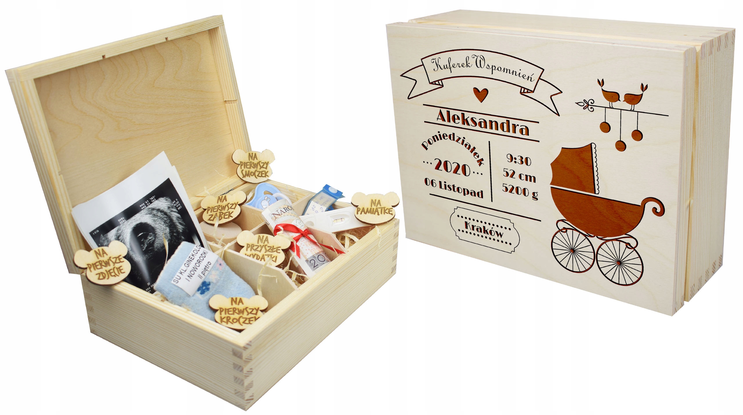 Деревянная шкатулка воспоминаний с отделениями - это уникальная идея подарка на крещение, годик, рождение ребенка, детский праздник или любой другой праздник. Шкатулку можно использовать для хранения различных ценных безделушек, игрушек или сувениров – что делает ее чрезвычайно практичным подарком. Натуральный характер древесины подходит к любому интерьеру, поэтому шкатулка, помимо того, что является сентиментальным сувениром, несомненно, является красивым декоративным элементом.
