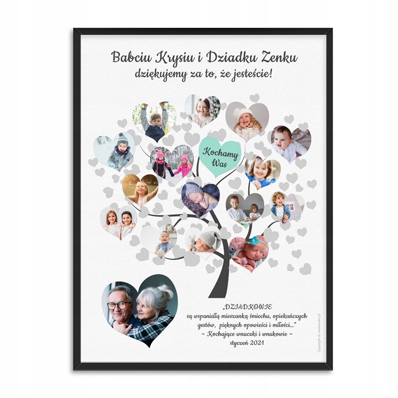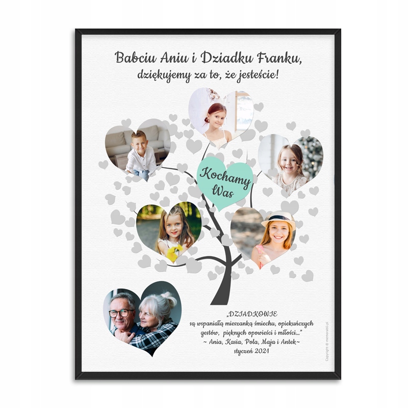 - Подпись — например, Любящие внуки и внуки / или можно упомянуть имена, например, Аня, Кася, Пола, Майя и Антек.