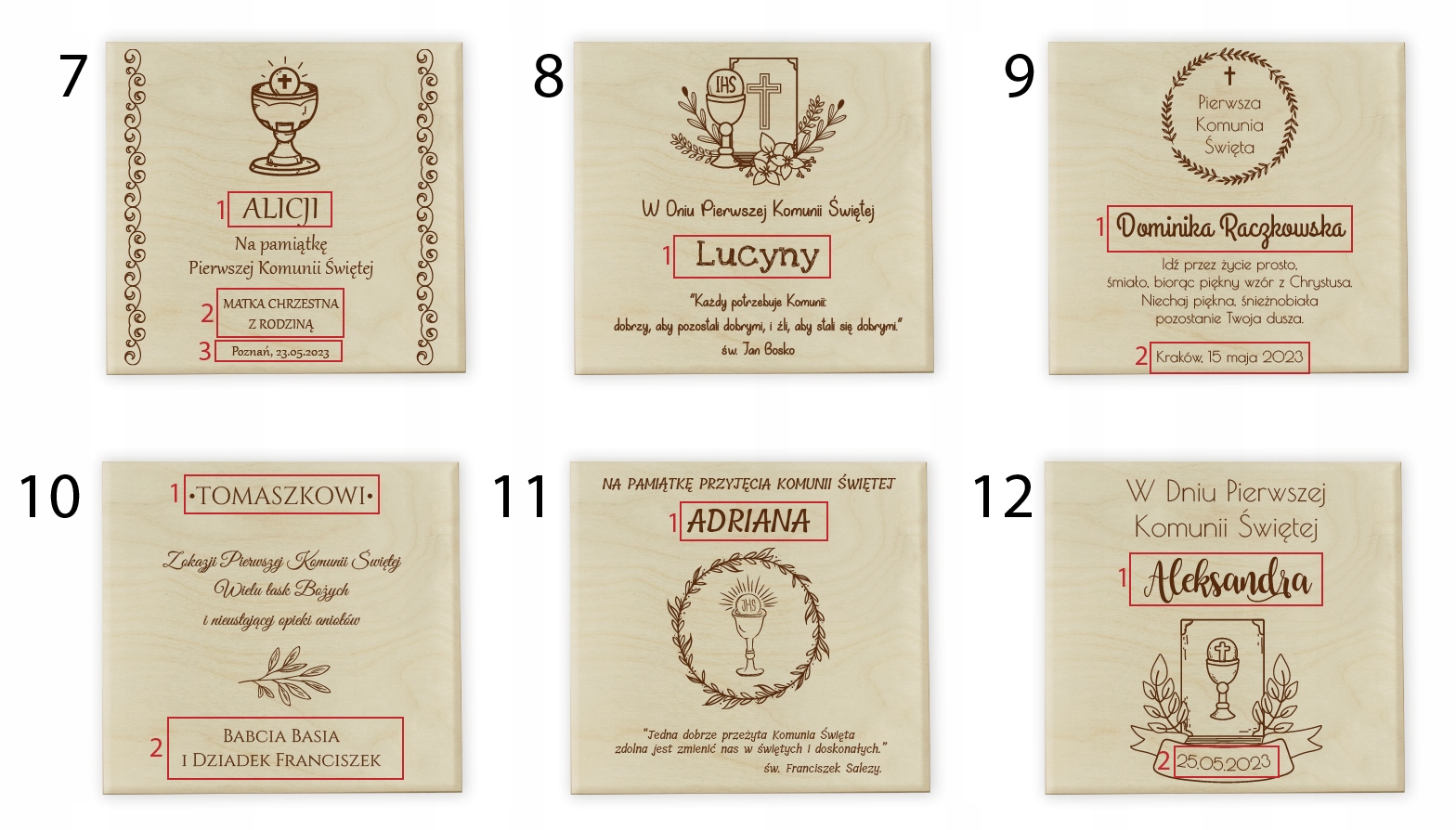 Причастие – особенный день, который остаётся в нашей памяти надолго. Сувениры, которые мы вывозим спустя годы, напоминают нам об этом дне. Отличная идея — подарить персонализированную коробку, на которой может быть гравировка, например, с датой, напоминающей вам об этом событии.