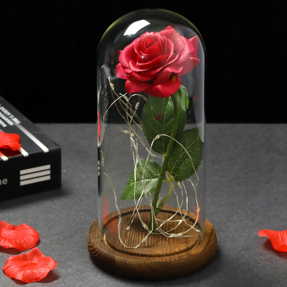 ВЕЧНАЯ РОЗА В СТЕКЛЕ ЖЕНСКИЙ ДЕНЬ СВЕТОДИОД В КОРОБКЕ