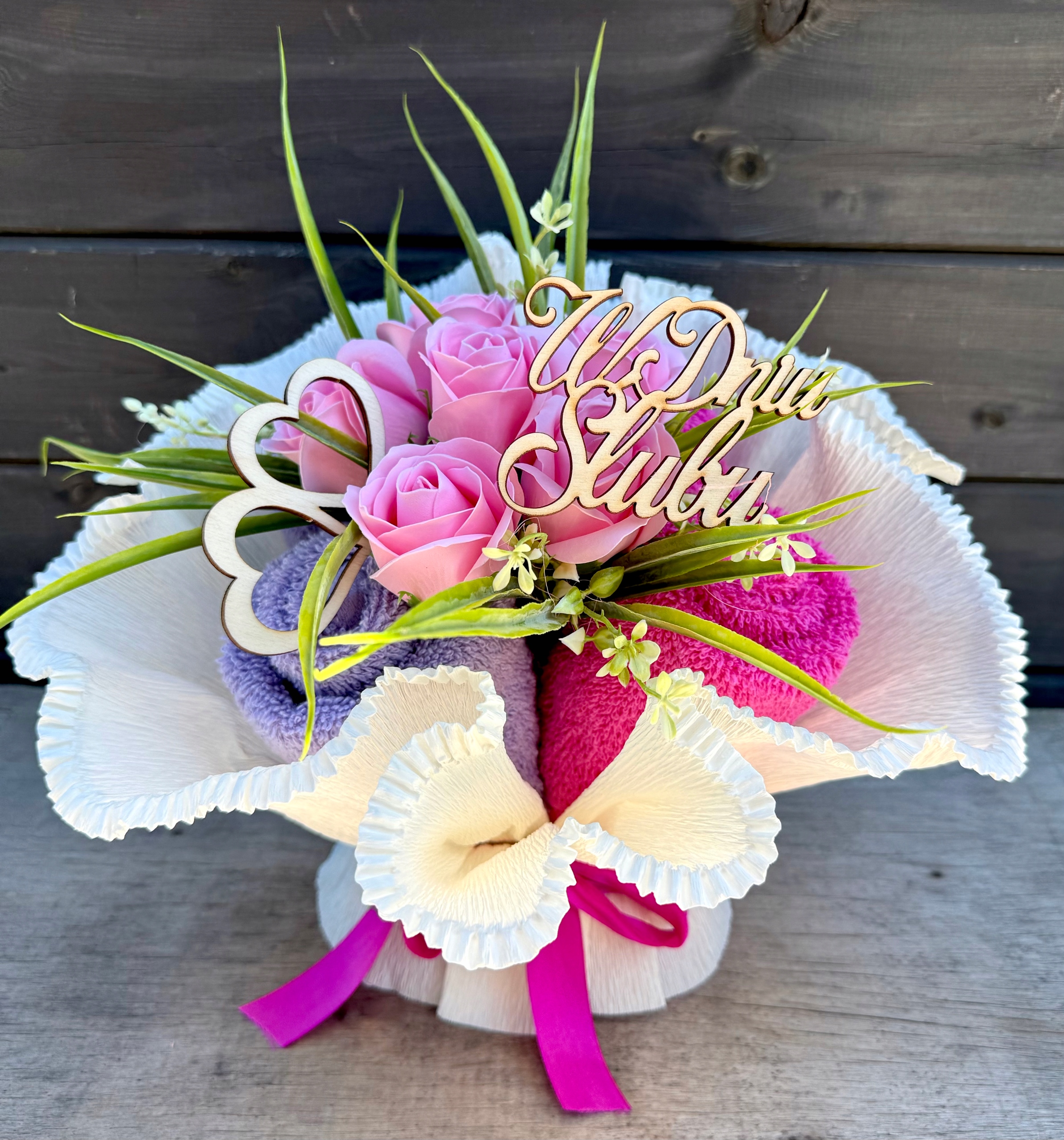 Мыльный букет мыльные розы подарок для годовщины свадьбы 2 большие полотенца