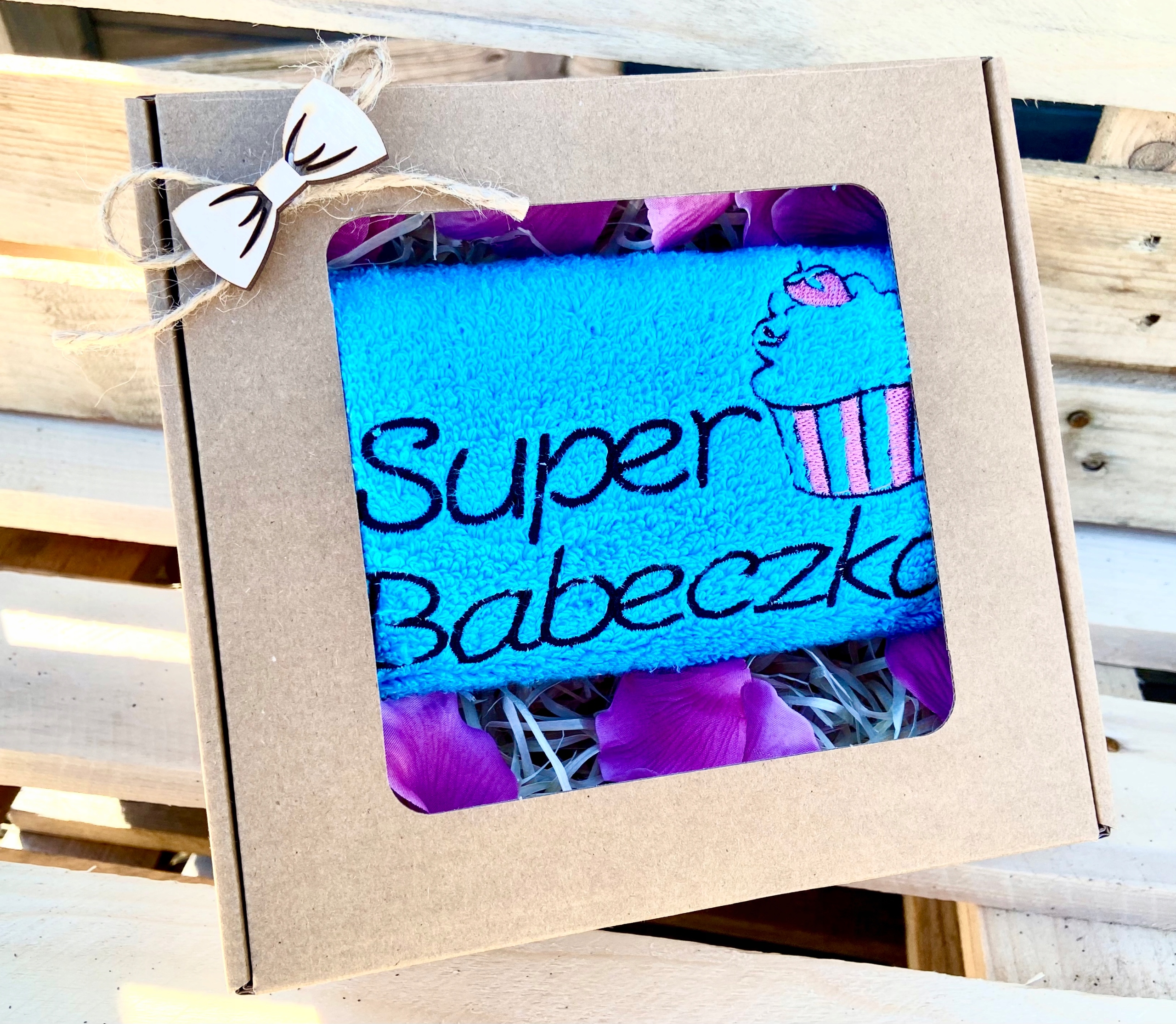 - полотенце для рукбирюзовое с черной надписью Суперкубок + рисунок кекса, размер 50х30 см,
