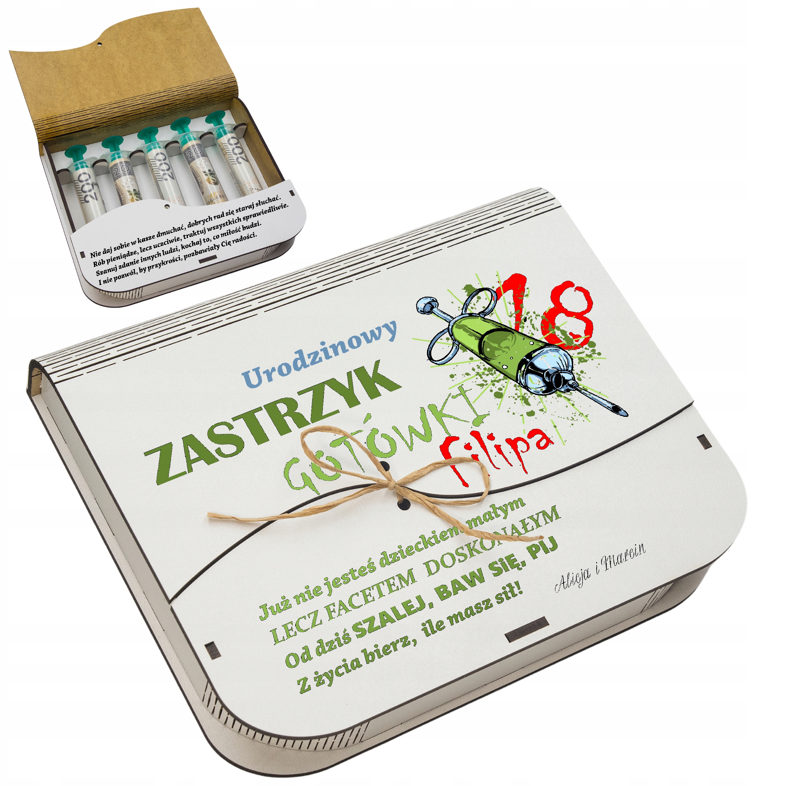- В шприцы можно свободно класть купюры, а распечатанные пожелания заменят классическую открытку.
