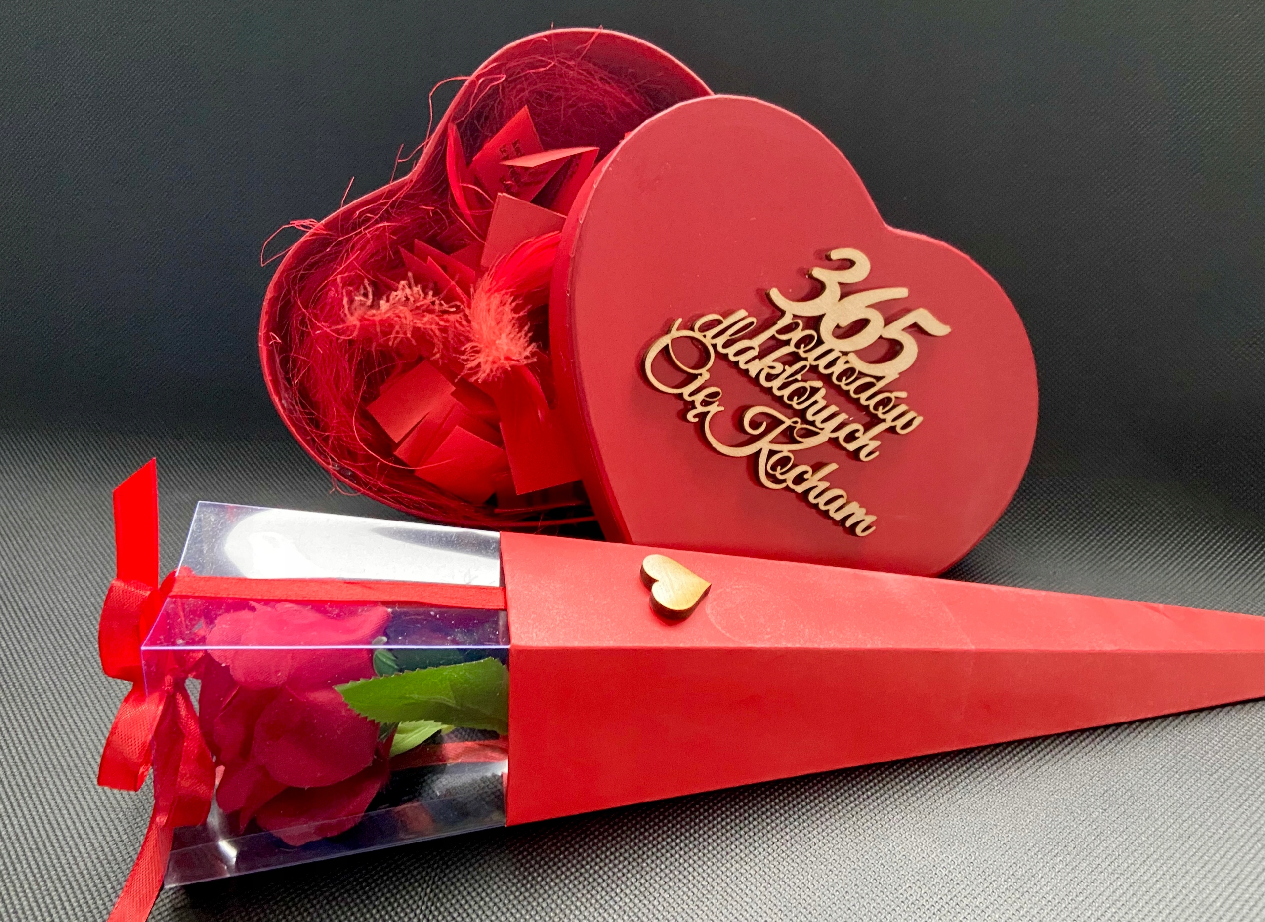 - коробка в форме сердца длиной 18 см и высотой 10 см, изготовленная из прочного картона с деревянной надписью 365 причины, почему я тебя люблю,